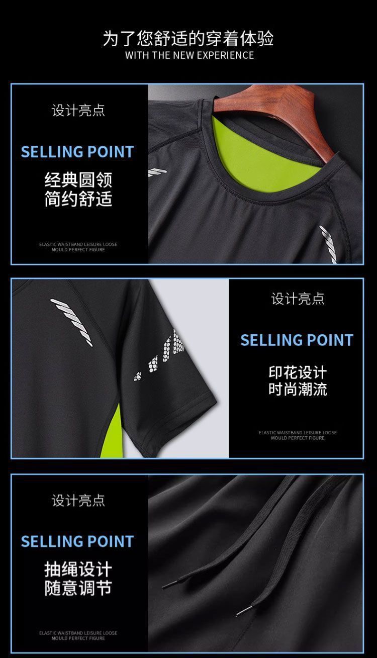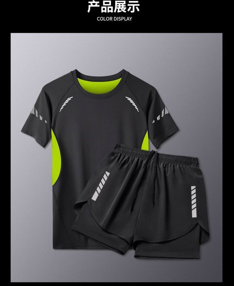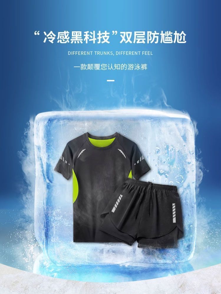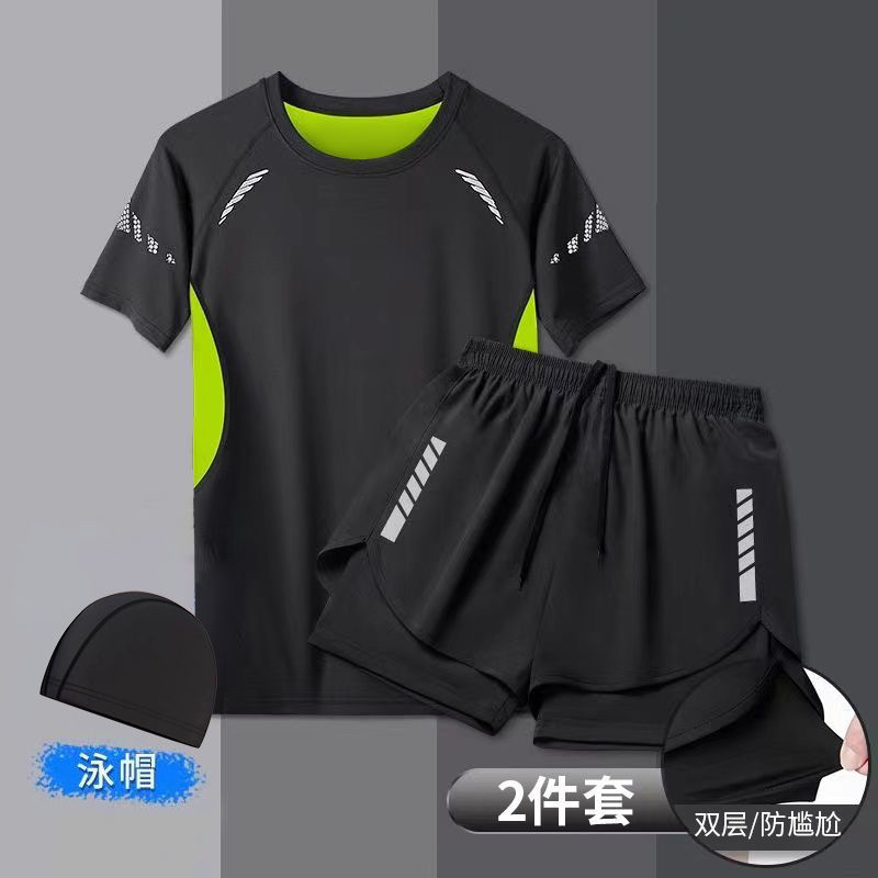 • 실크 그린 반팔 + 블랙 더블 레이어 반바지 [수영모 포함]
