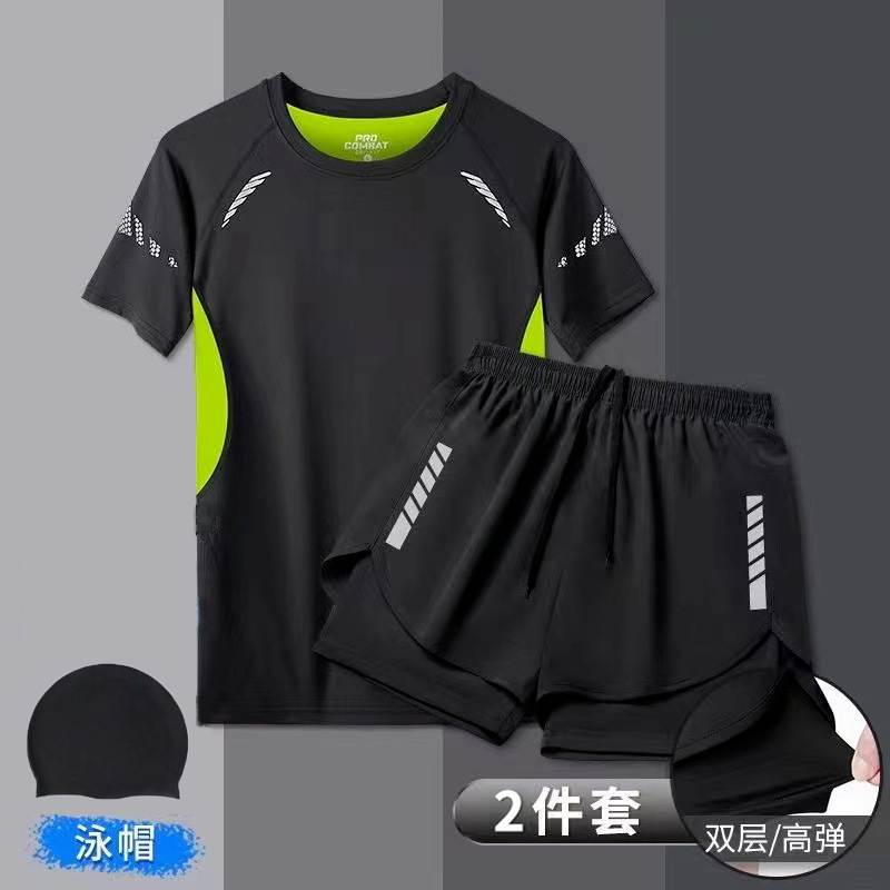 • 엘리트 반팔 + 블랙 더블 레이어 반바지 [수영모 포함]