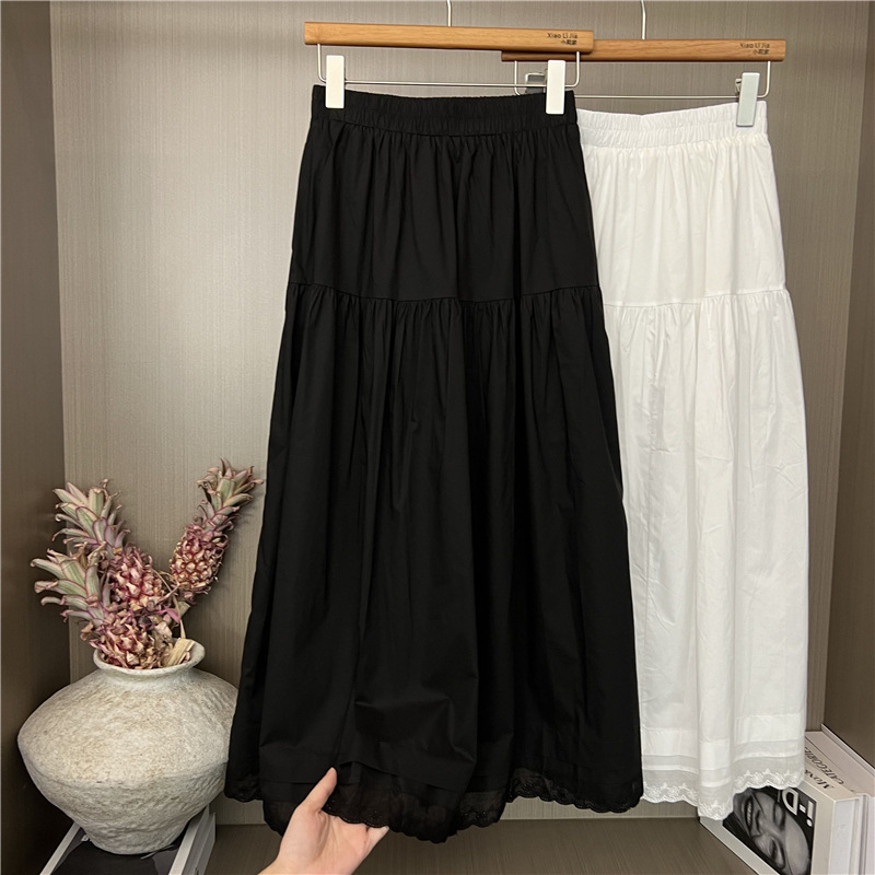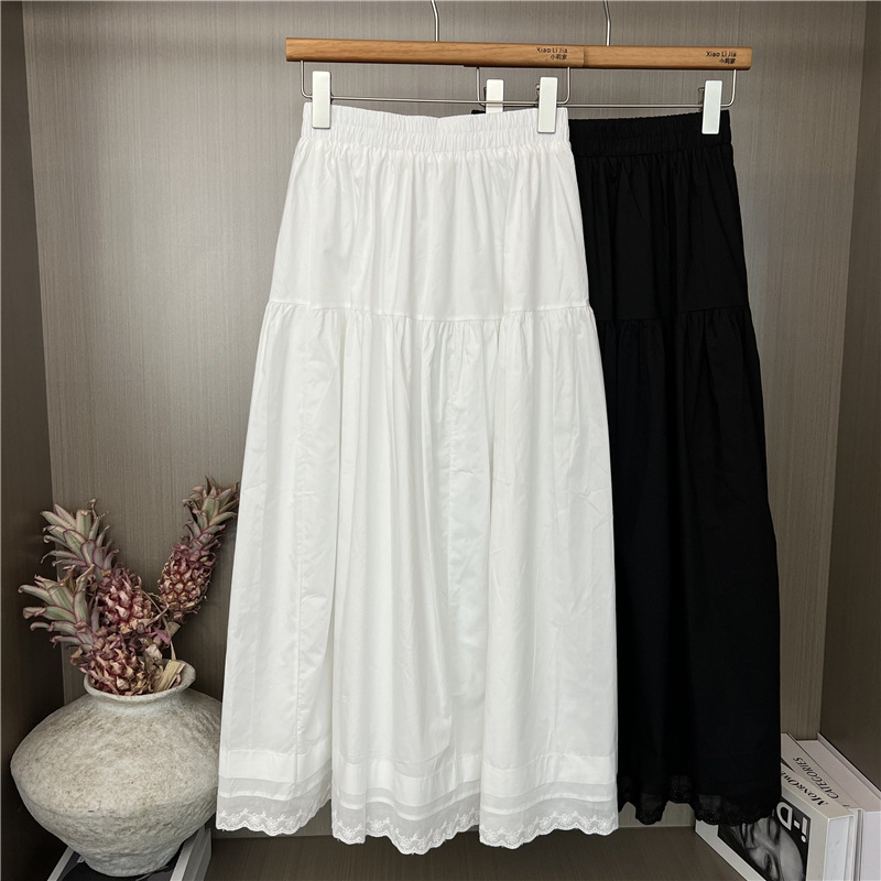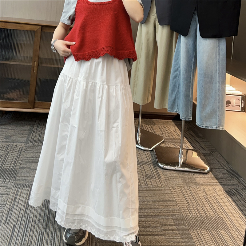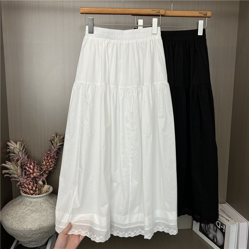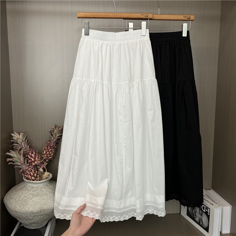 韩系白色蕾丝拼接半身裙女春季2025新款小个子显瘦高腰中长a字裙