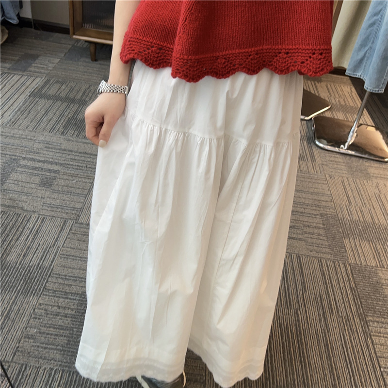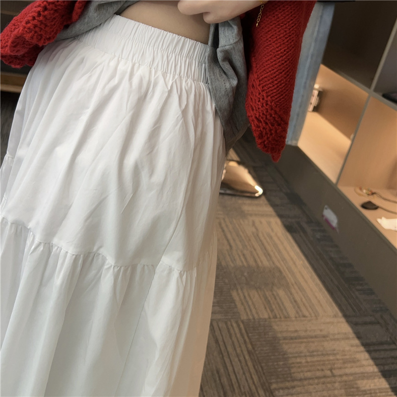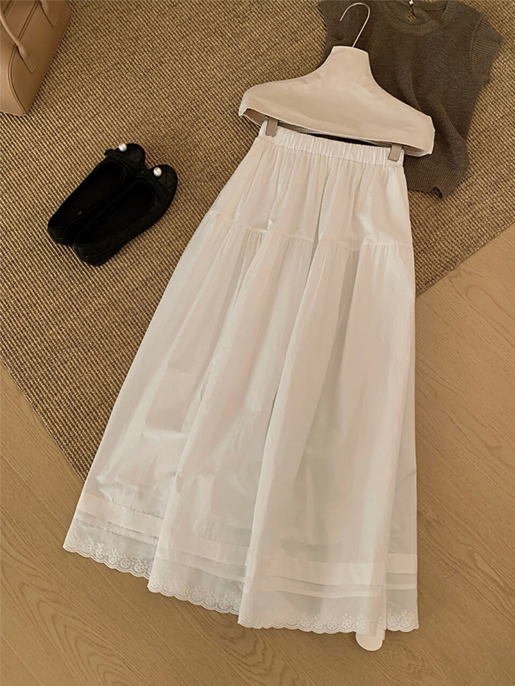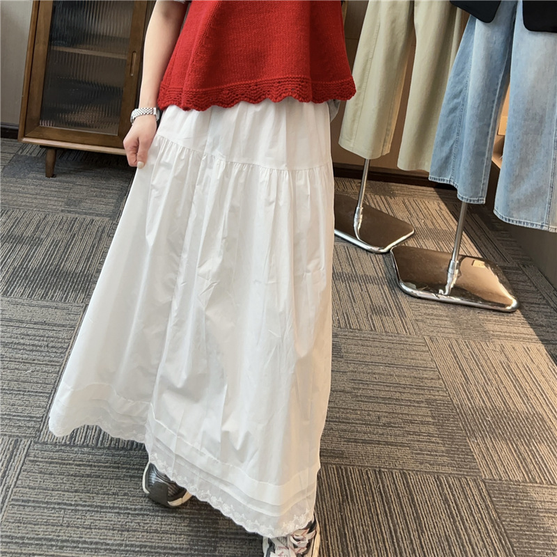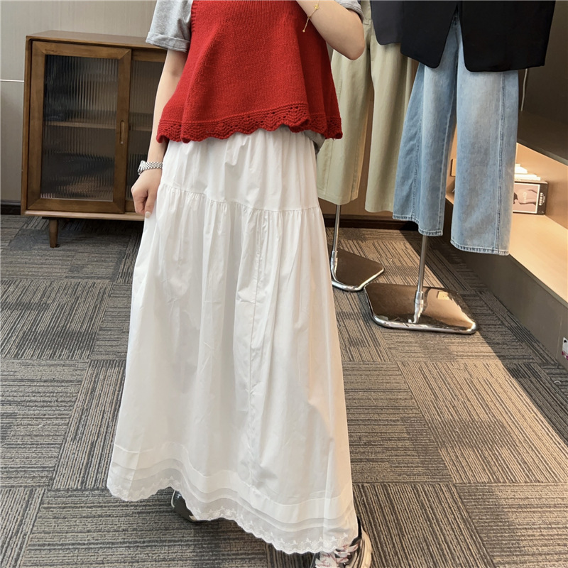 韩系白色蕾丝拼接半身裙女春季2025新款小个子显瘦高腰中长a字裙