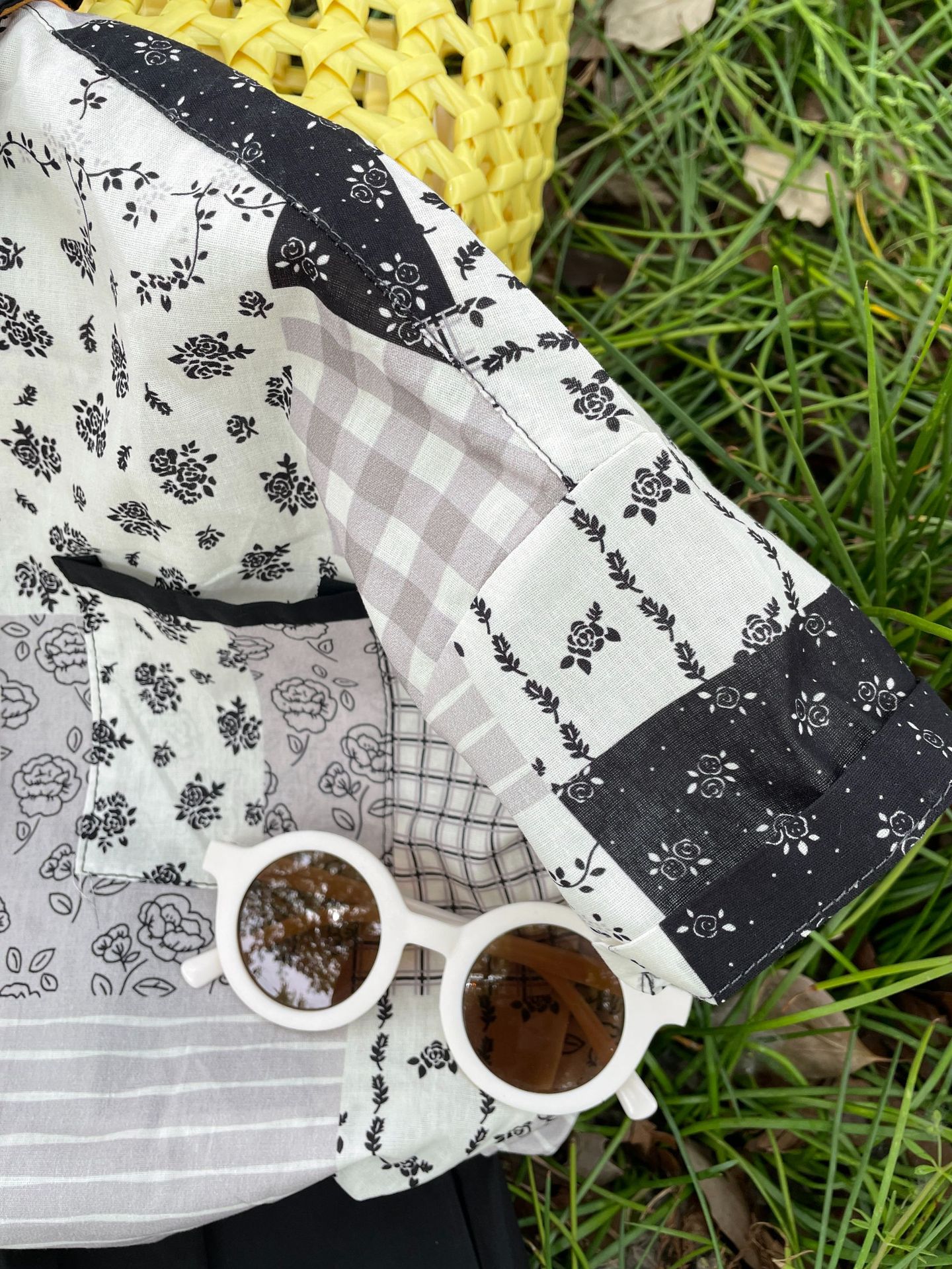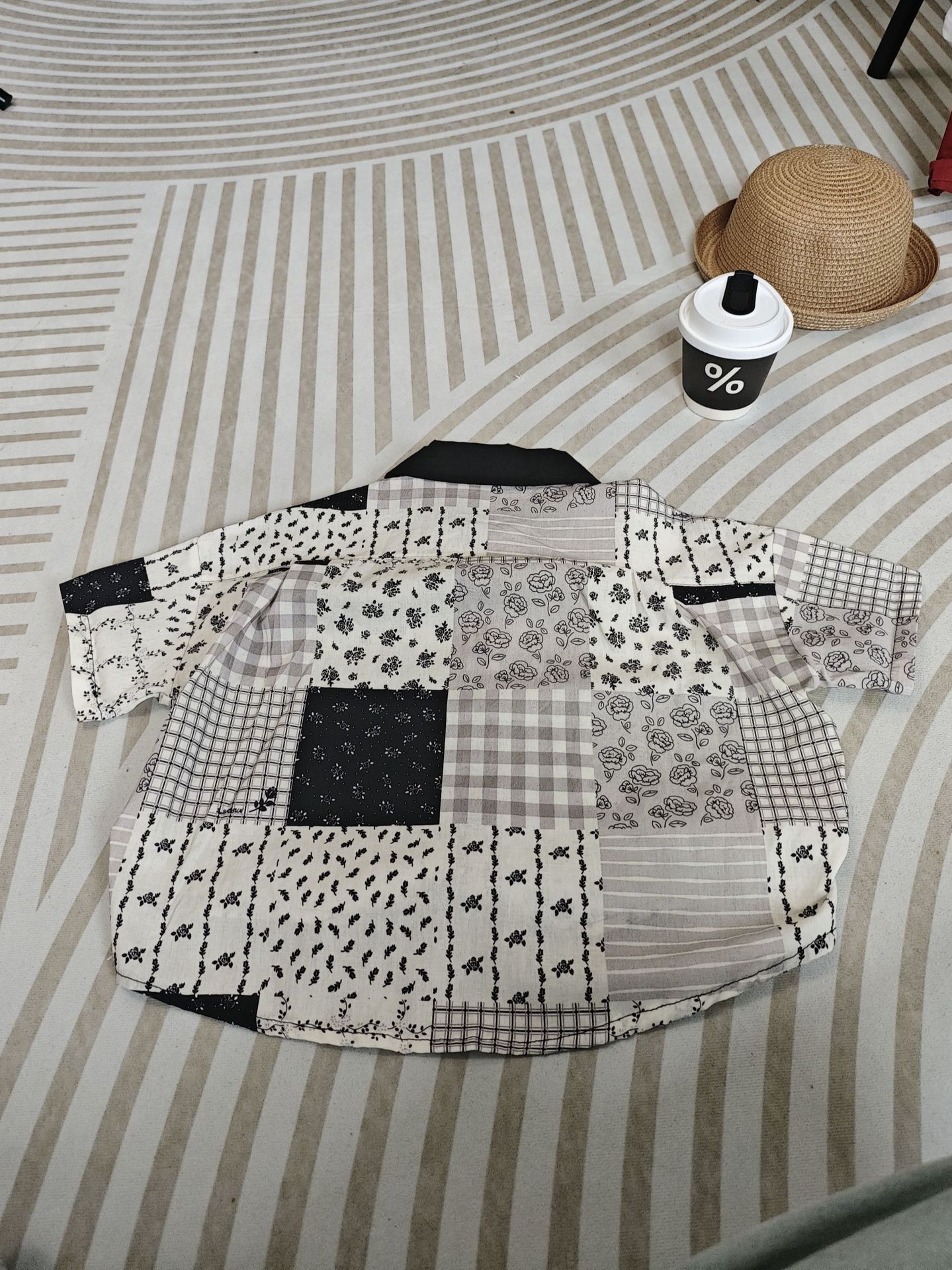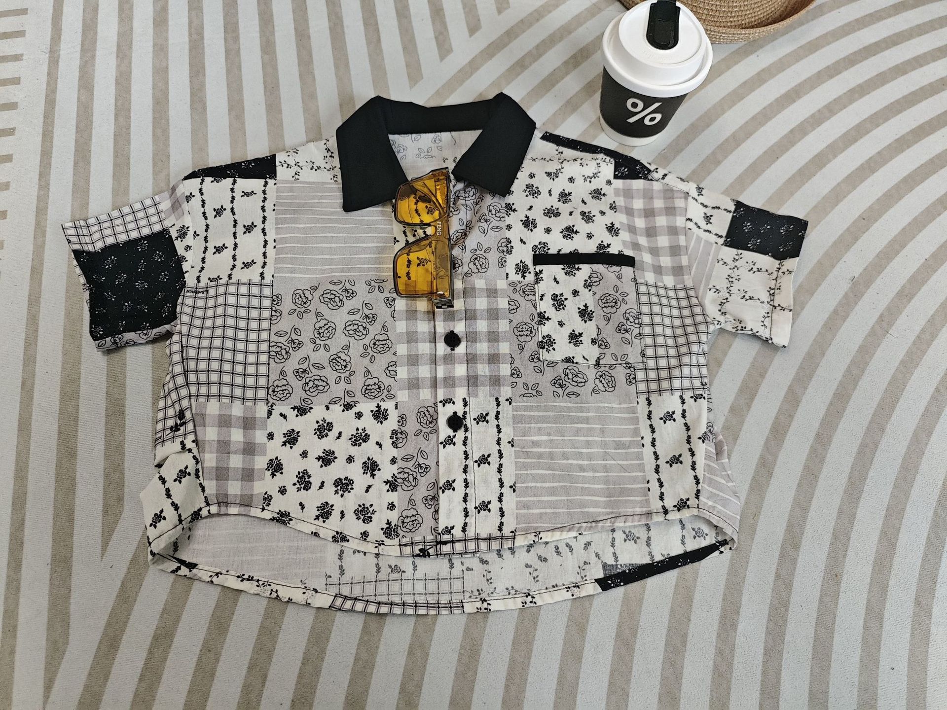 • 트렌디한 꽃무늬 컬러블록 반팔 셔츠(여름)
