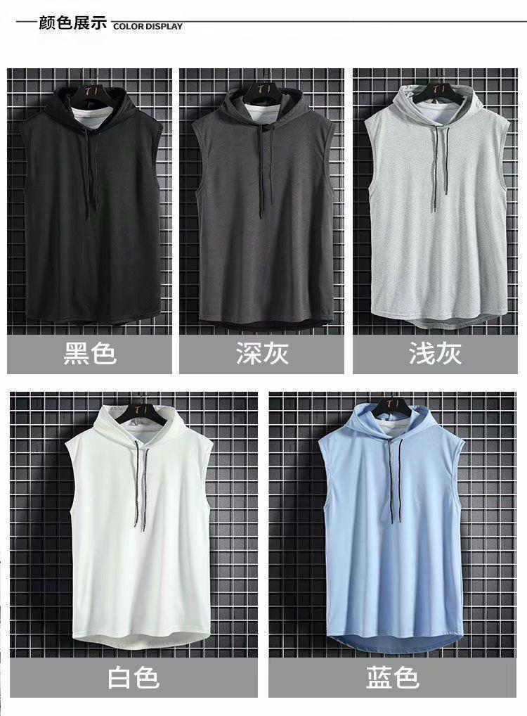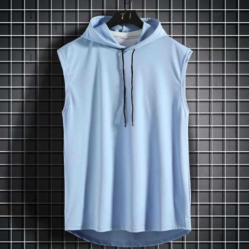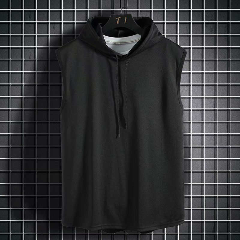 새로운 민소매 조끼 탑 남성 캐주얼 티셔츠 솔리드 컬러 후드 티셔츠 레이스 업 티셔츠 힙합 남성 스웨트스토어 가기