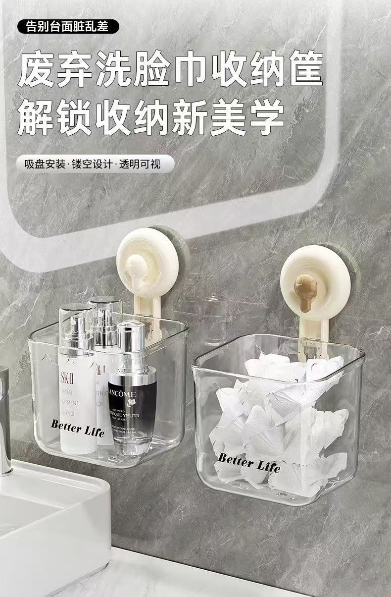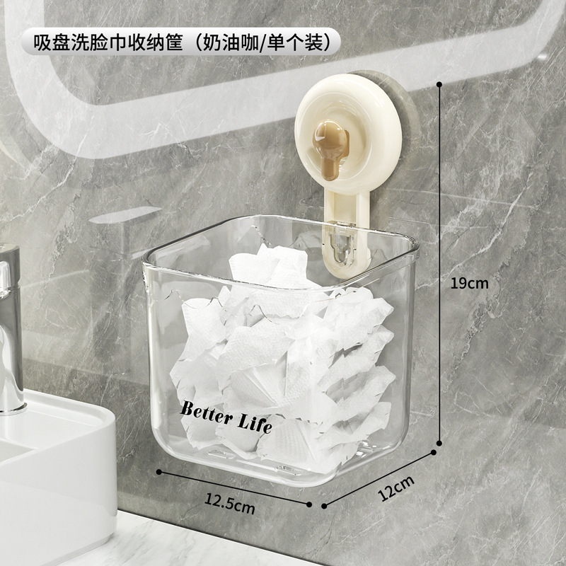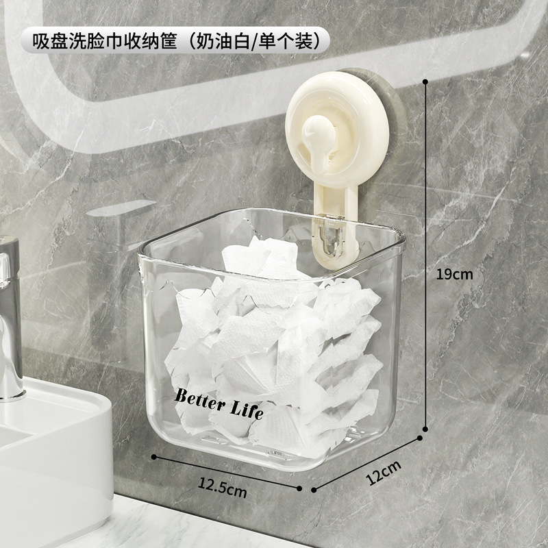 • 패치 흡착컵 세수 수건 보관 바구니 [투명]