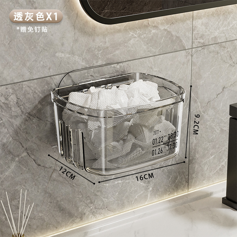 • 패치 흡착컵 세수 수건 수납바구니 [투명 그레이]