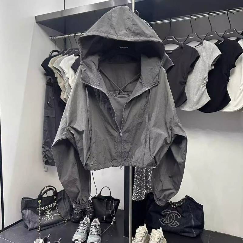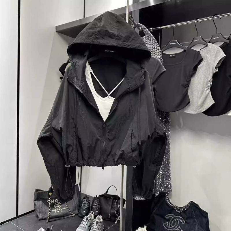 후드 썬 보호 의류 여성 2025 여름 새로운 루즈 캐주얼 올 매치 얇은 솔리드 컬러 짧은 재킷 여성 자켓스토어 가기