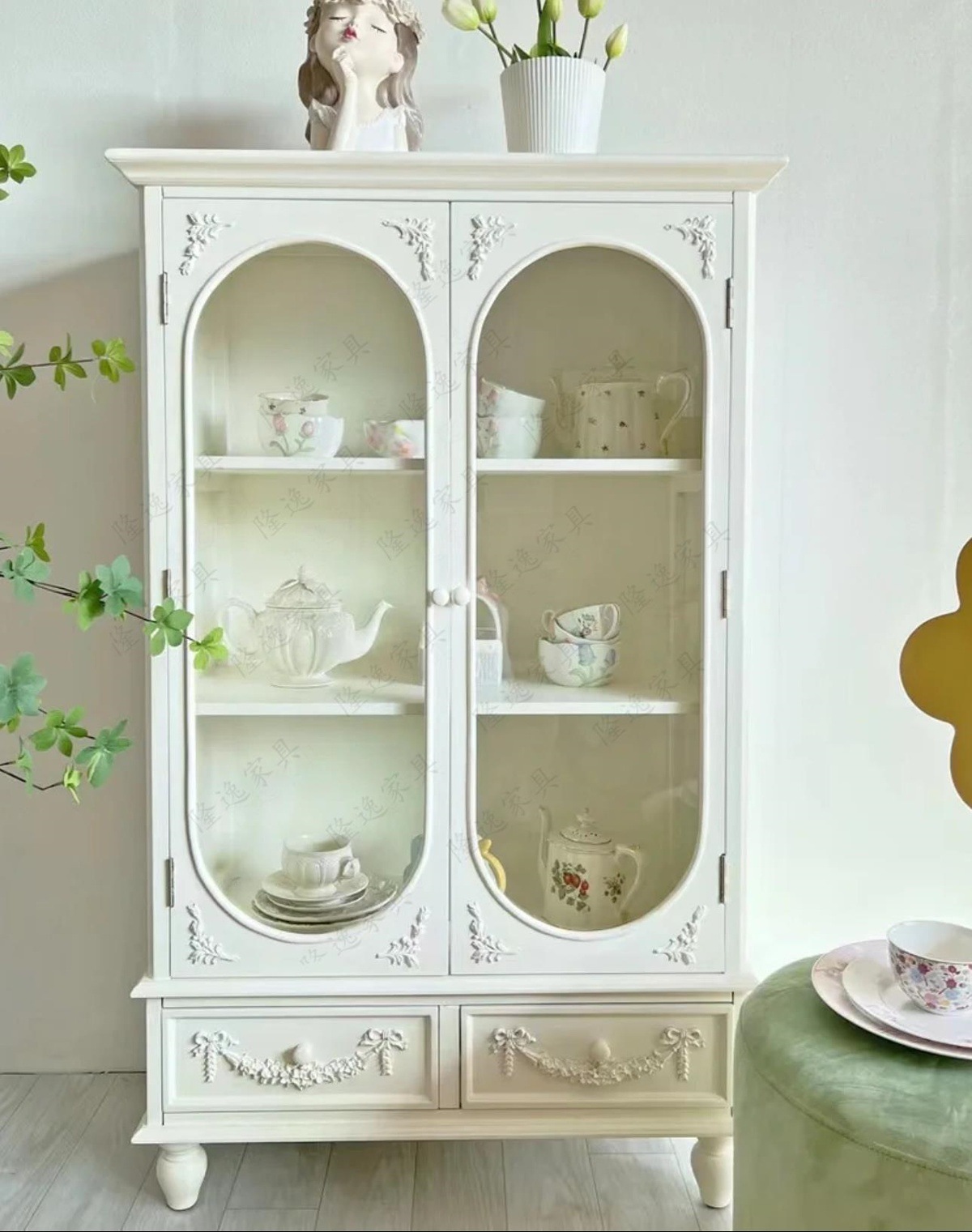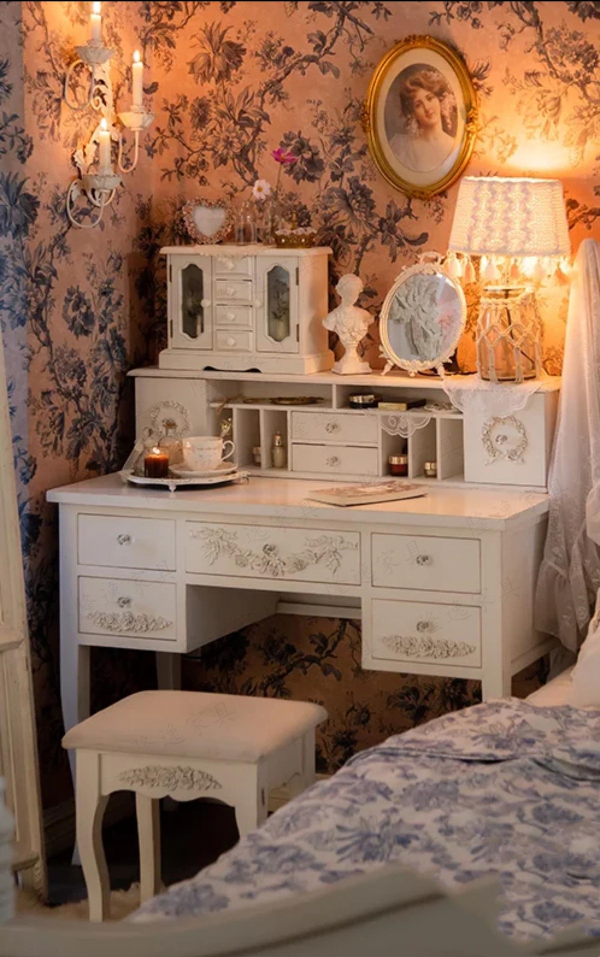 프랑스 스타일 흰색 단단한 나무 복고풍 침대 조각 된 나비 매듭 공주 침대 어린이 침대 소녀 침대 1.8m 더블스토어 가기