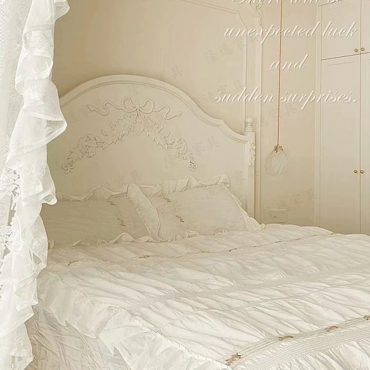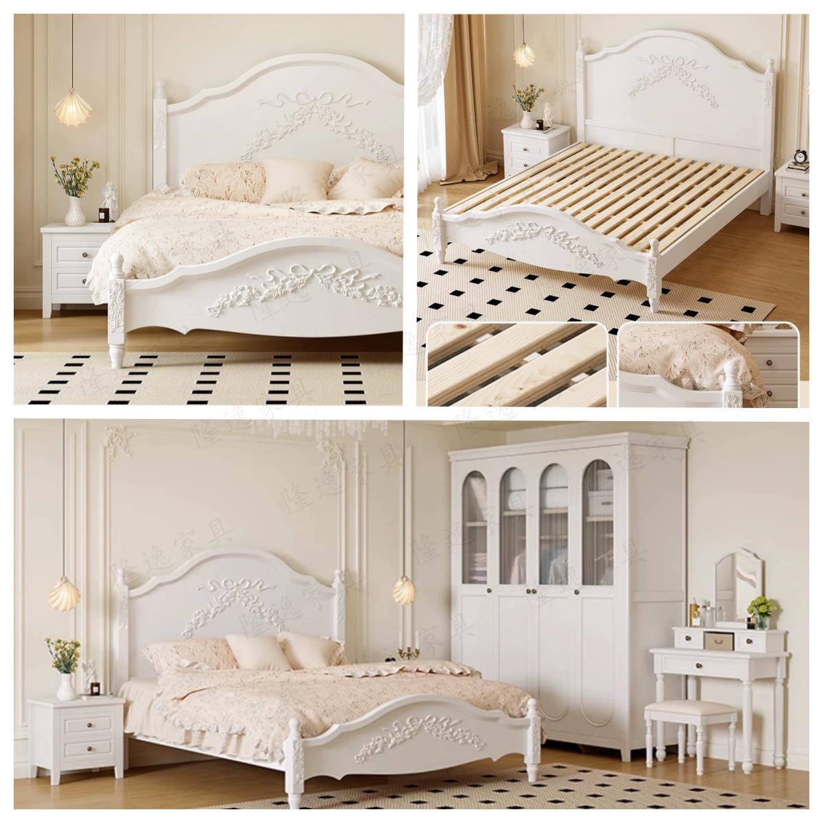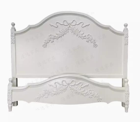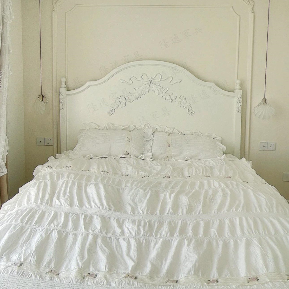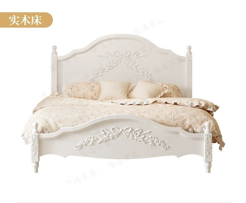 프랑스 스타일 흰색 단단한 나무 복고풍 침대 조각 된 나비 매듭 공주 침대 어린이 침대 소녀 침대 1.8m 더블