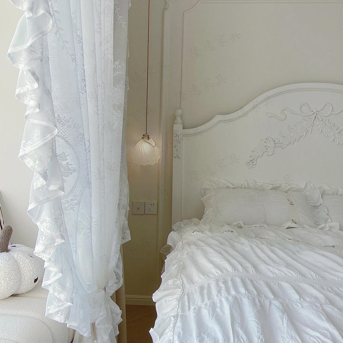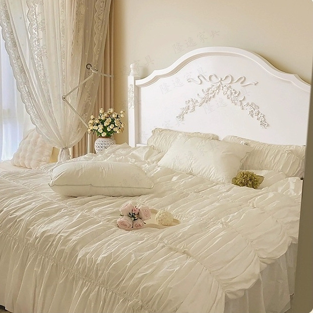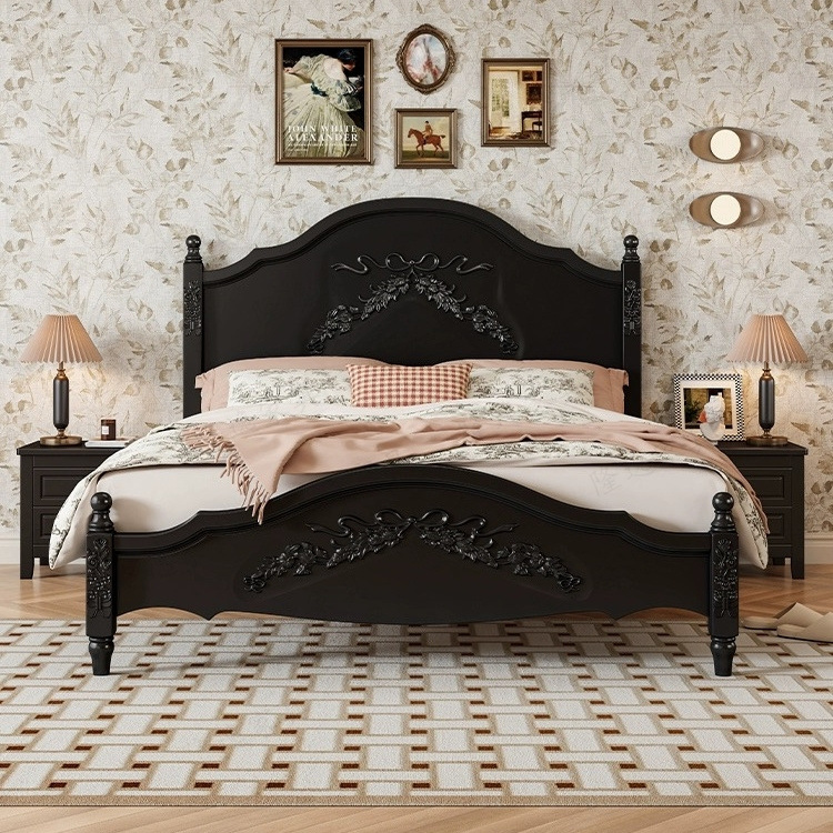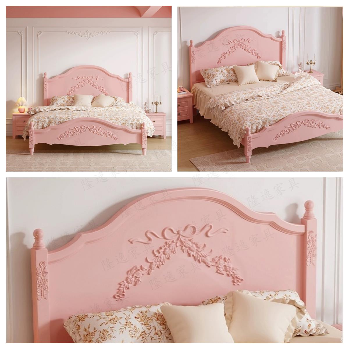 프랑스 스타일 흰색 단단한 나무 복고풍 침대 조각 된 나비 매듭 공주 침대 어린이 침대 소녀 침대 1.8m 더블