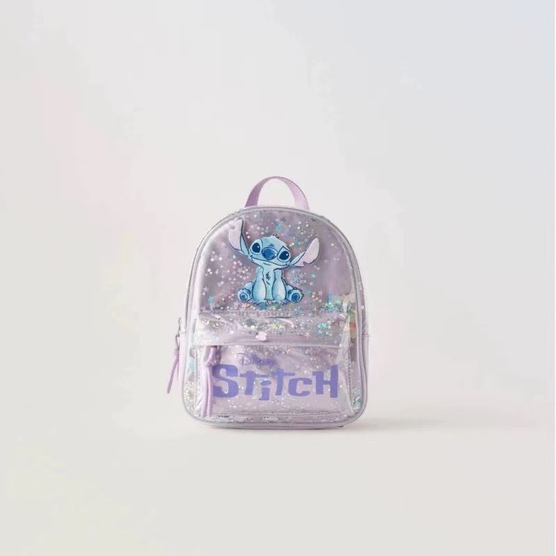 봄 신작 만화 귀여운 투명 스팽글 어린이 가방 소년과 소녀 스티치 배낭 유치원 배낭