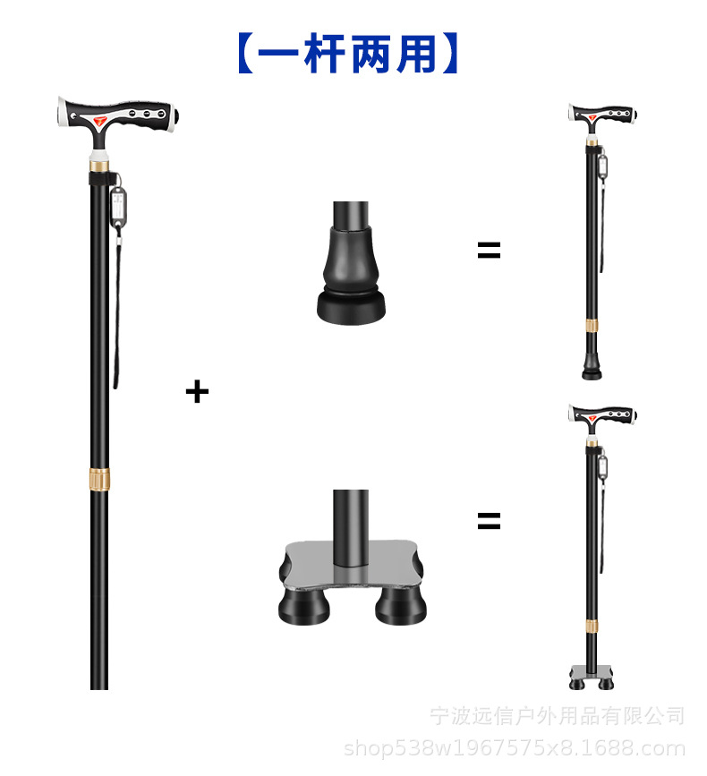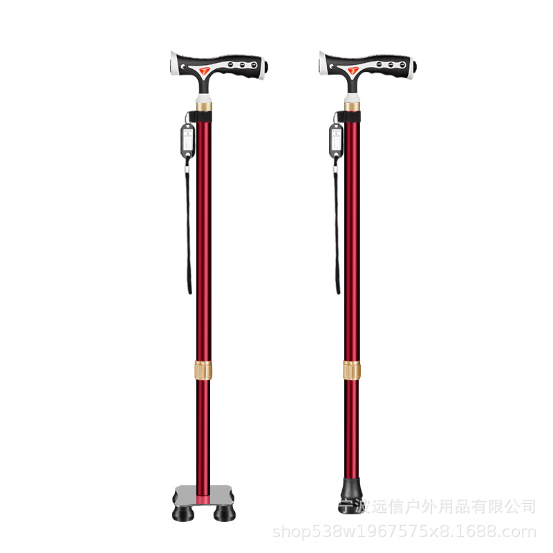 노인을 위한 조명이 있는 알루미늄 합금 지팡이, 고무 마그넷, 단일 발 고정, 4개의 다리, 2개의 용도 지팡이, 접이식 지팡이