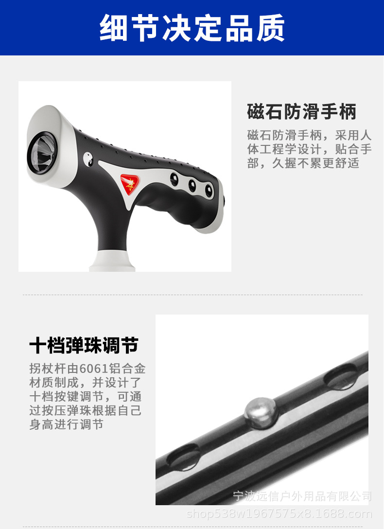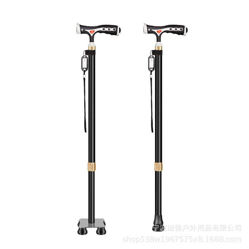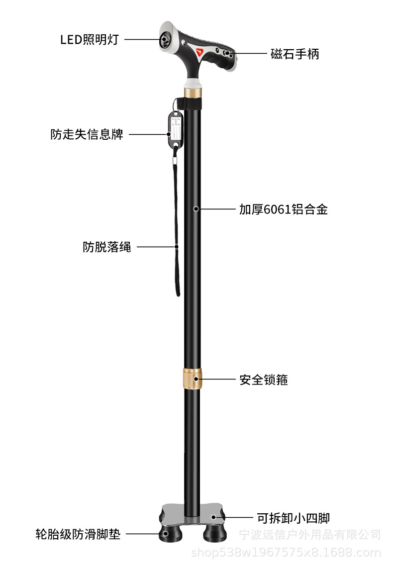 노인을 위한 조명이 있는 알루미늄 합금 지팡이, 고무 마그넷, 단일 발 고정, 4개의 다리, 2개의 용도 지팡이, 접이식 지팡이스토어 가기