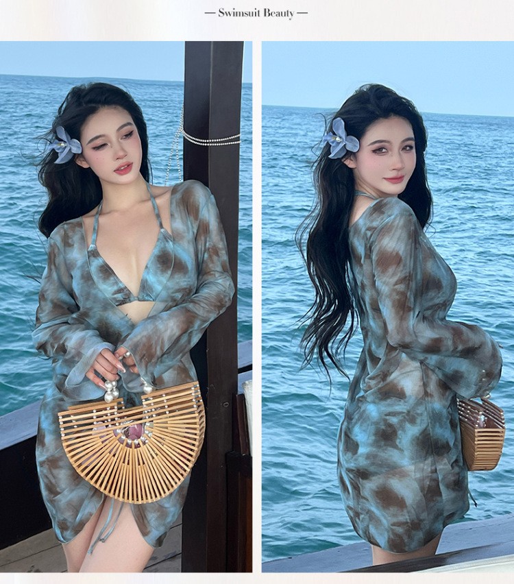 플러스 사이즈 뚱뚱한 mm 휴가 비키니 섹시한 3 피스 스플릿 긴팔 블라우스 순수한 욕망 스타일 배를 덮는 슬리밍 수영복 여성용스토어 가기
