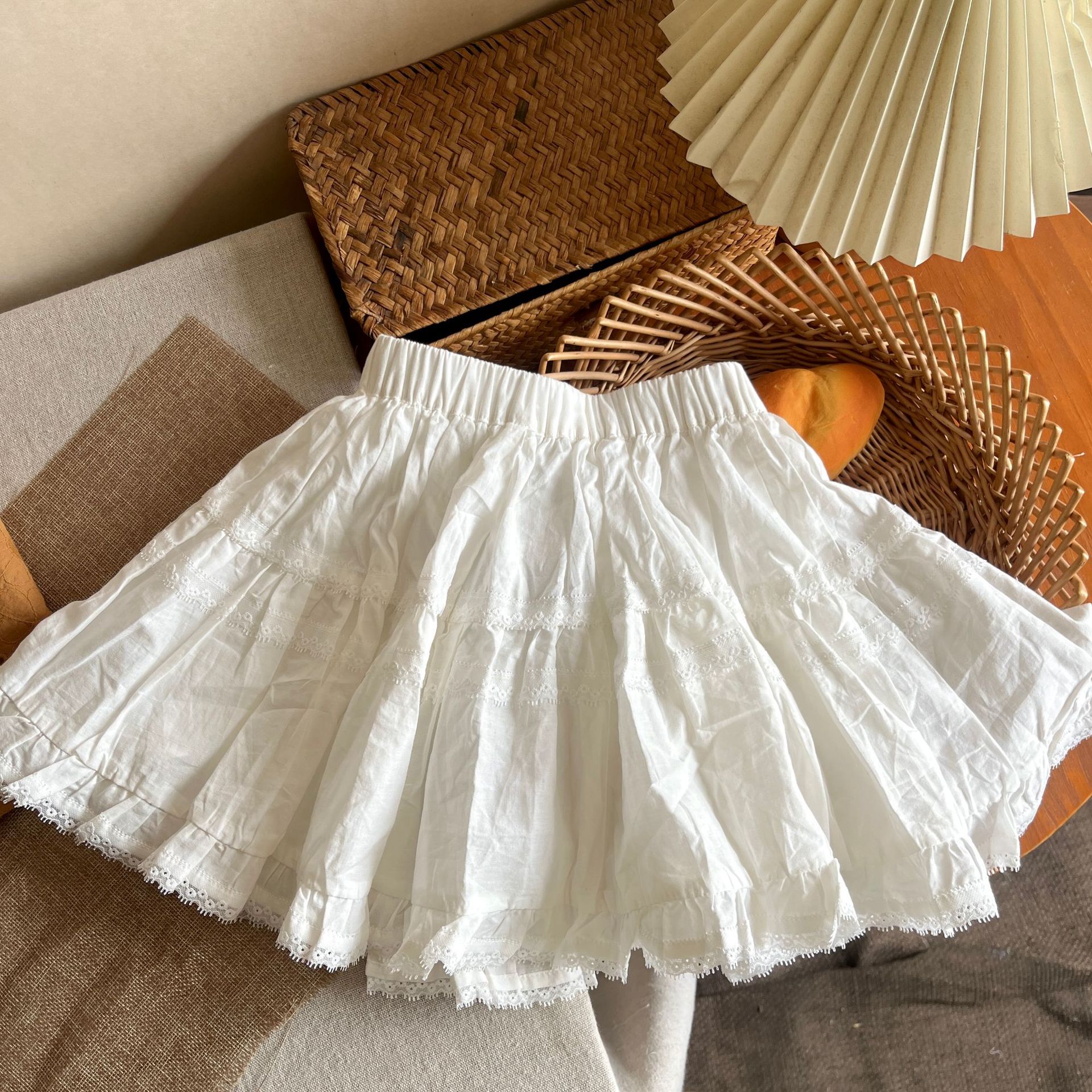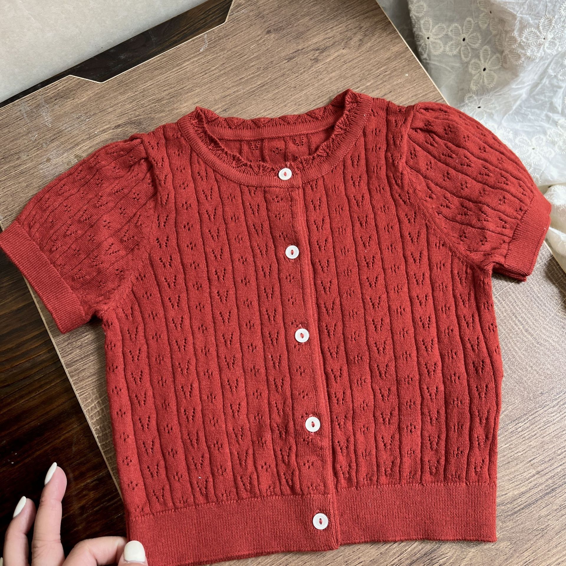 2025 여름 소녀 틈새 싱글웨어 코트 레이스 할로우 퍼프 슬리브 니트 카디건 세트 스커트스토어 가기