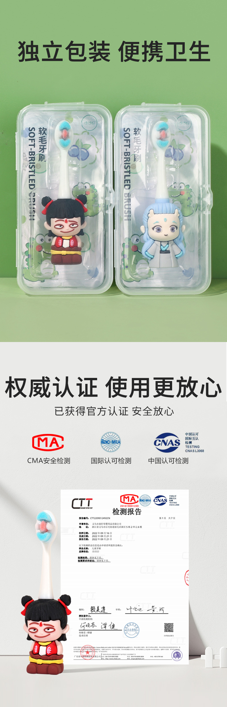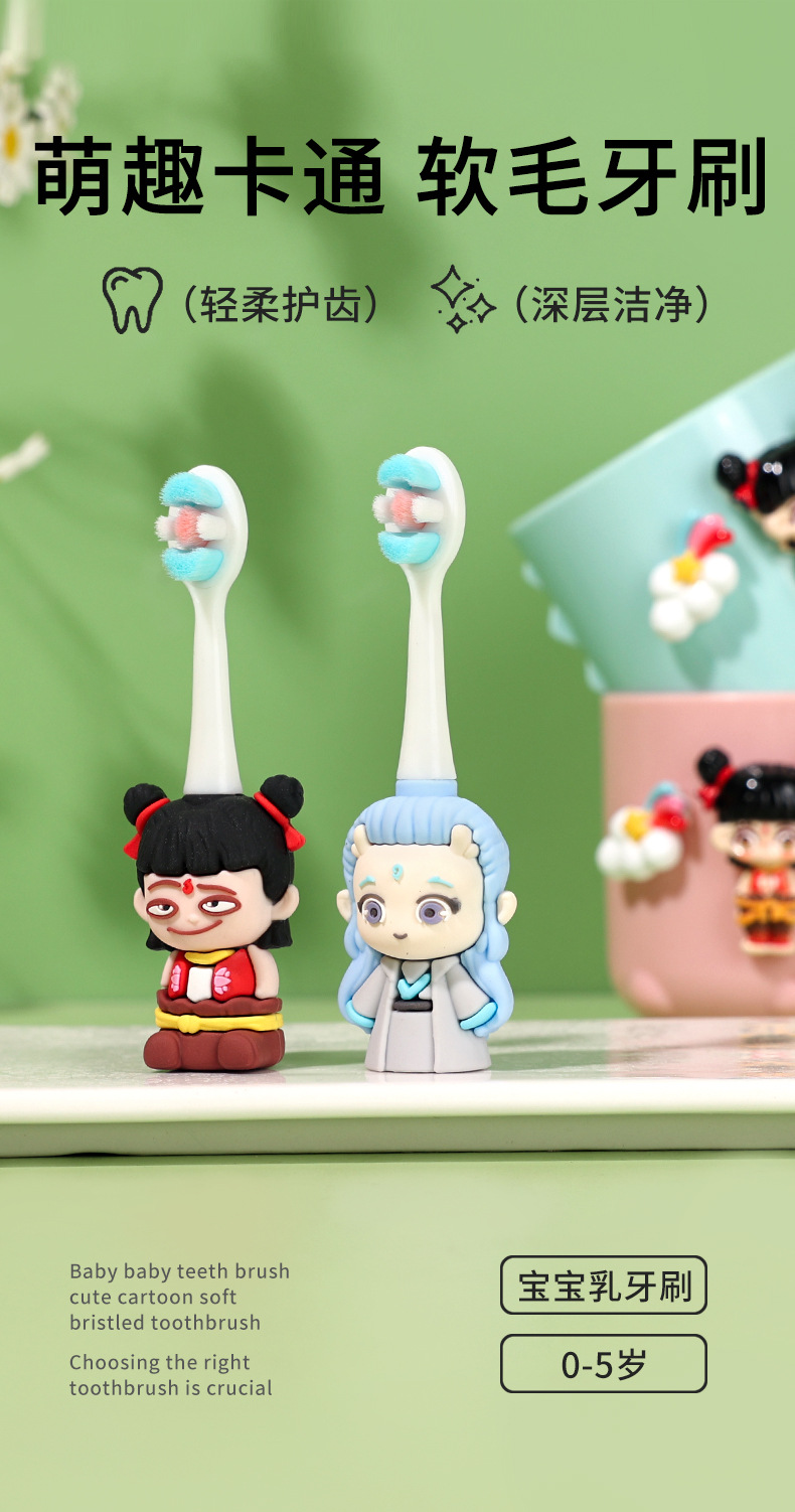어린이 칫솔 1-7 세 부드러운 머리 작은 머리 만화 귀여운 작은 Nezha 모양 미끄럼 방지 손잡이 아기 구강 청소스토어 가기
