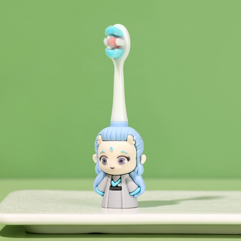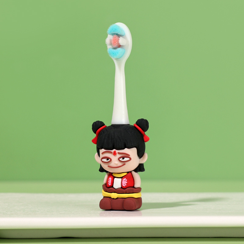 어린이 칫솔 1-7 세 부드러운 머리 작은 머리 만화 귀여운 작은 Nezha 모양 미끄럼 방지 손잡이 아기 구강 청소