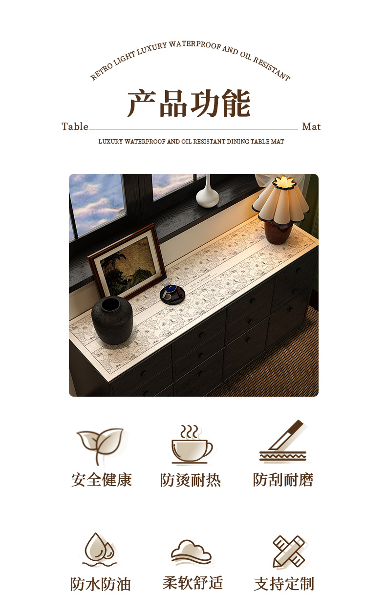 아메리칸 스타일 레트로 사이드 보드 테이블 매트 방수 오일-세탁 금지 가죽 입구 캐비닛 매트 TV 캐비닛 카운터 탑 보호 매트스토어 가기