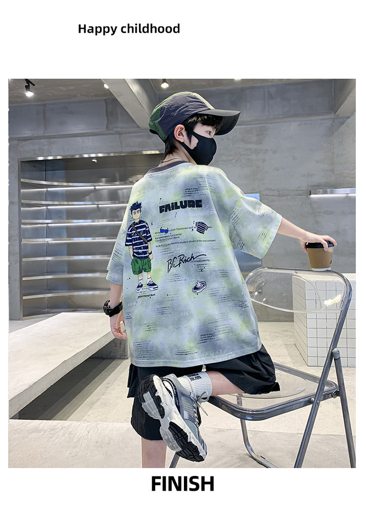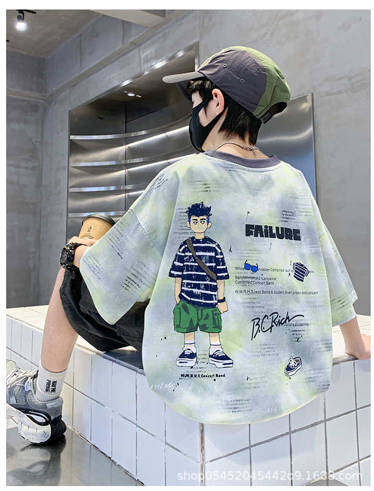 2025 새로운 소년 여름 반팔 티셔츠 얇은 큰 어린이 여름 옷 소년 반팔 어린이 스트리트 탑 트렌디 쿨 t스토어 가기