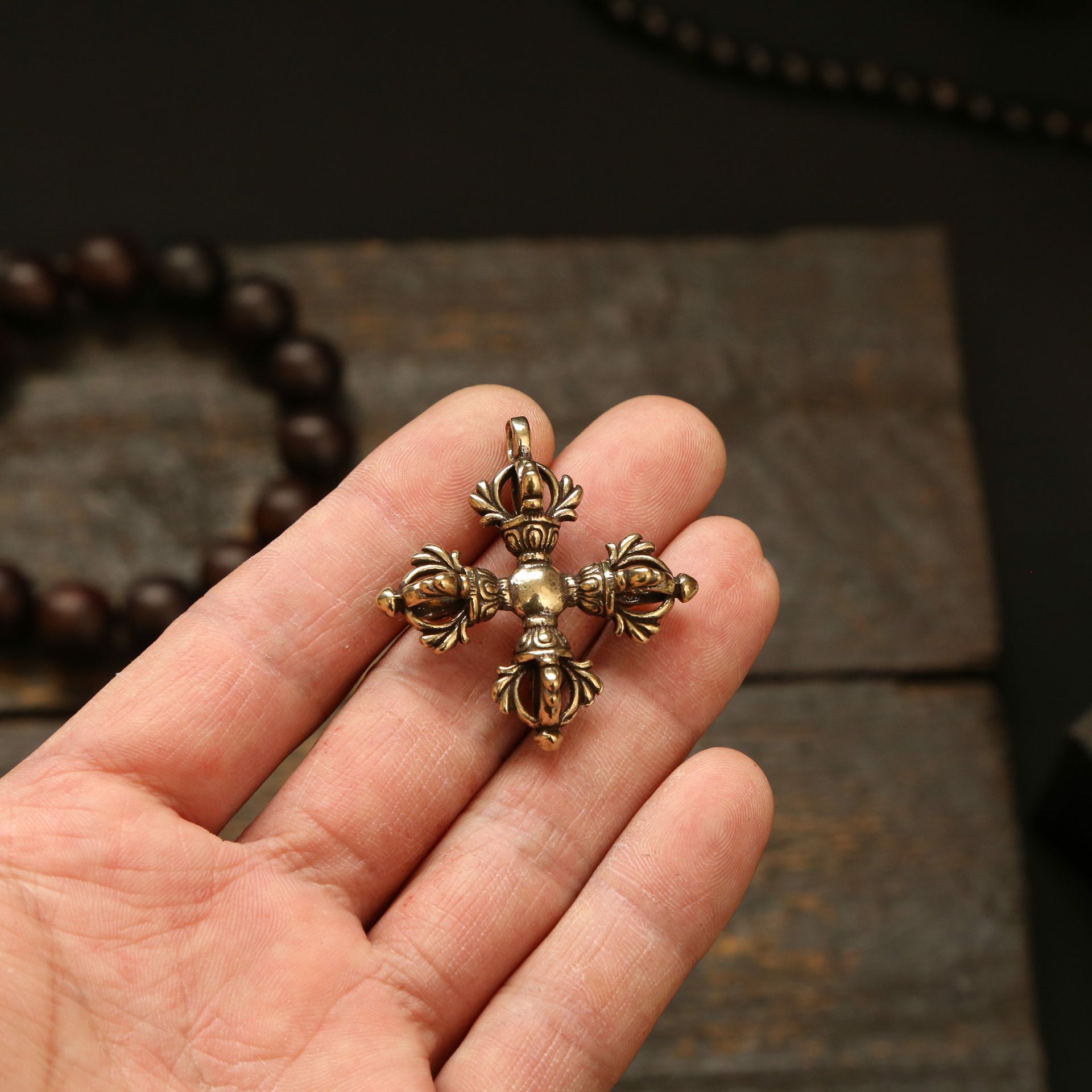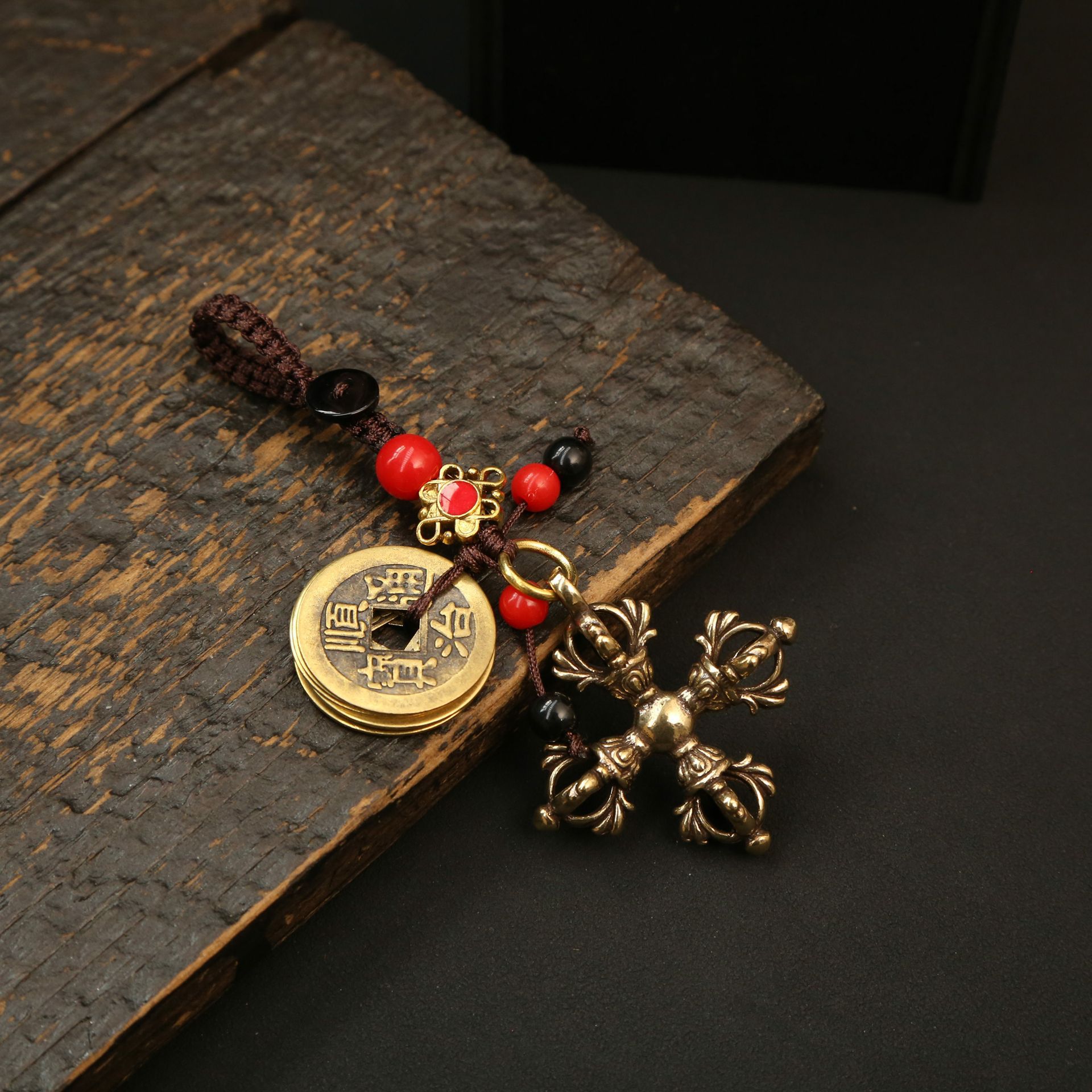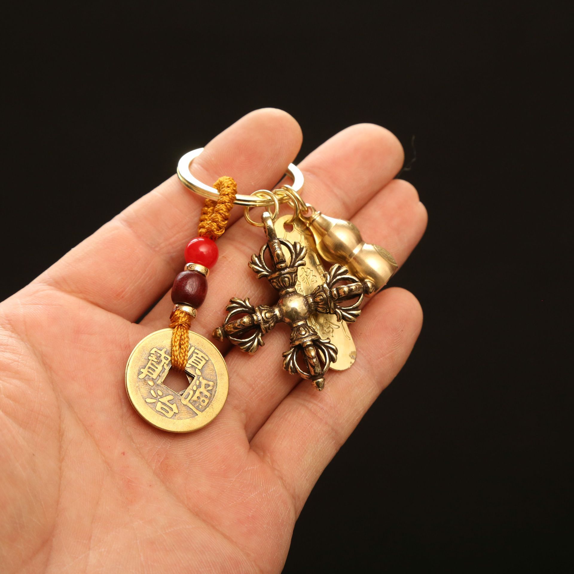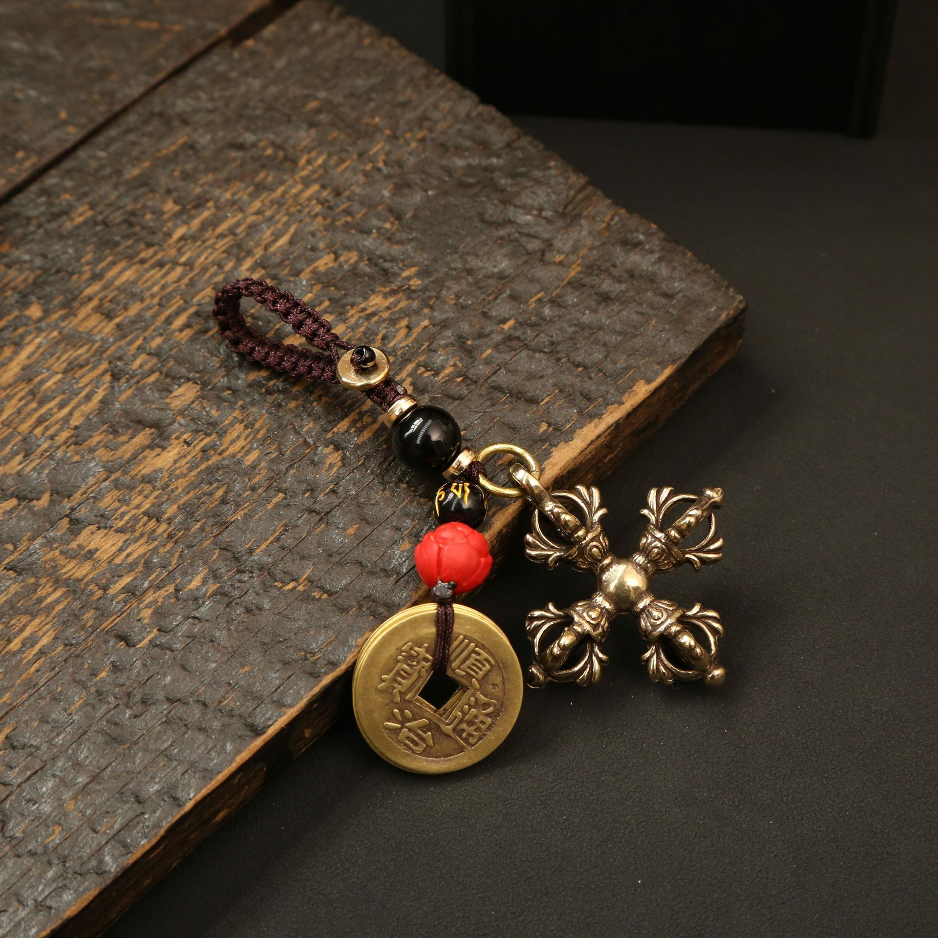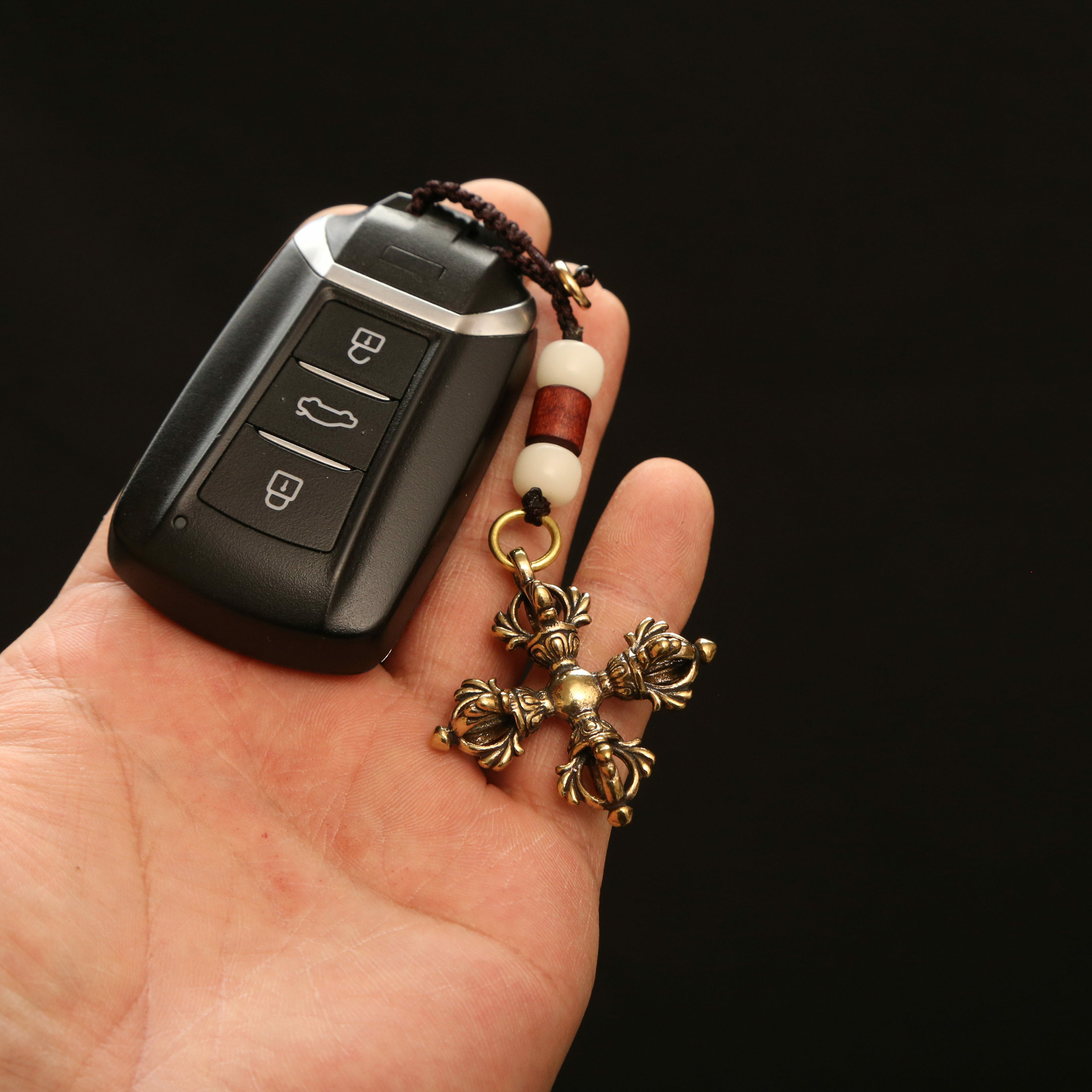 황동 십자가 연꽃 다이아몬드 막대 열쇠 고리 펜던트 펜던트 남성과 여성 가방 자동차 키 펜던트 구리 공예스토어 가기