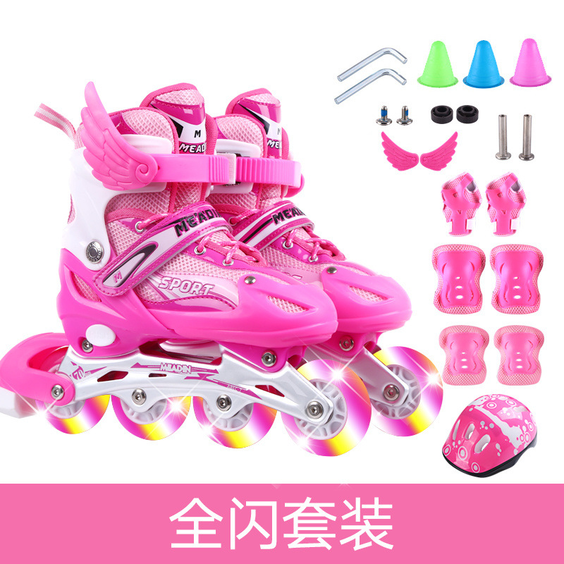 스케이트 어린이 풀 세트 조정 가능한 플래시 인라인 스케이트 키즈 스케이트 롤러 스케이트 소년 소녀스토어 가기