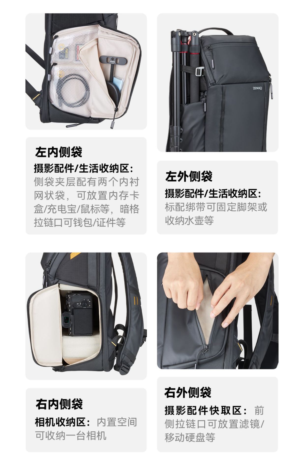 ZENIKO 사진 가방 On the Go 방수 카메라 가방 등산 가방 대용량 사진 가방 전문 마이크로 SLR스토어 가기