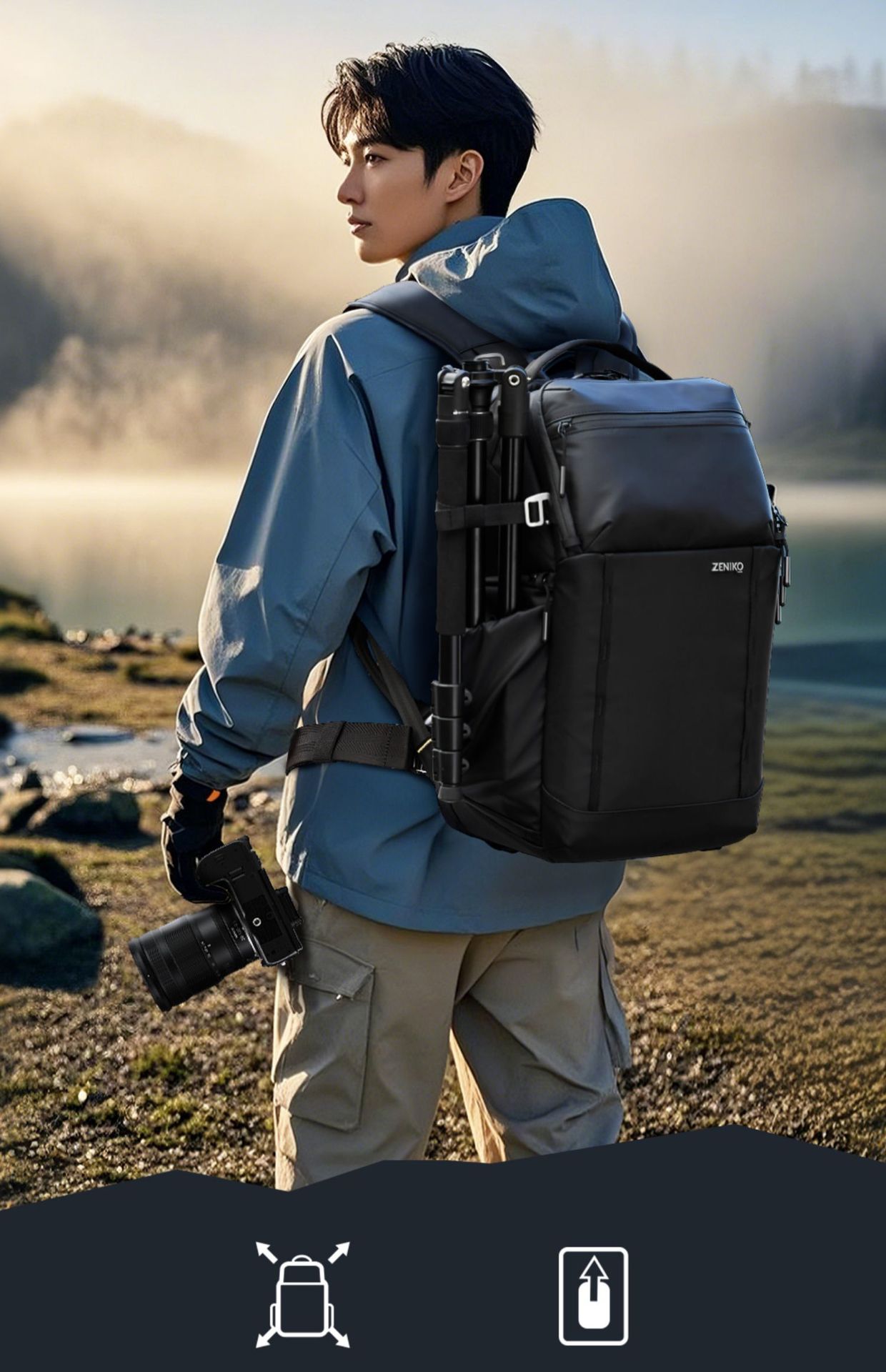ZENIKO 사진 가방 On the Go 방수 카메라 가방 등산 가방 대용량 사진 가방 전문 마이크로 SLR