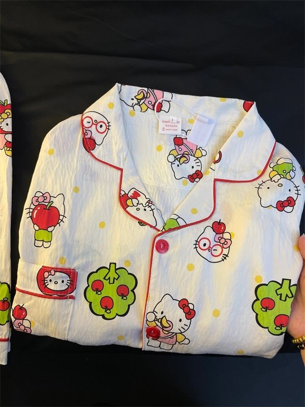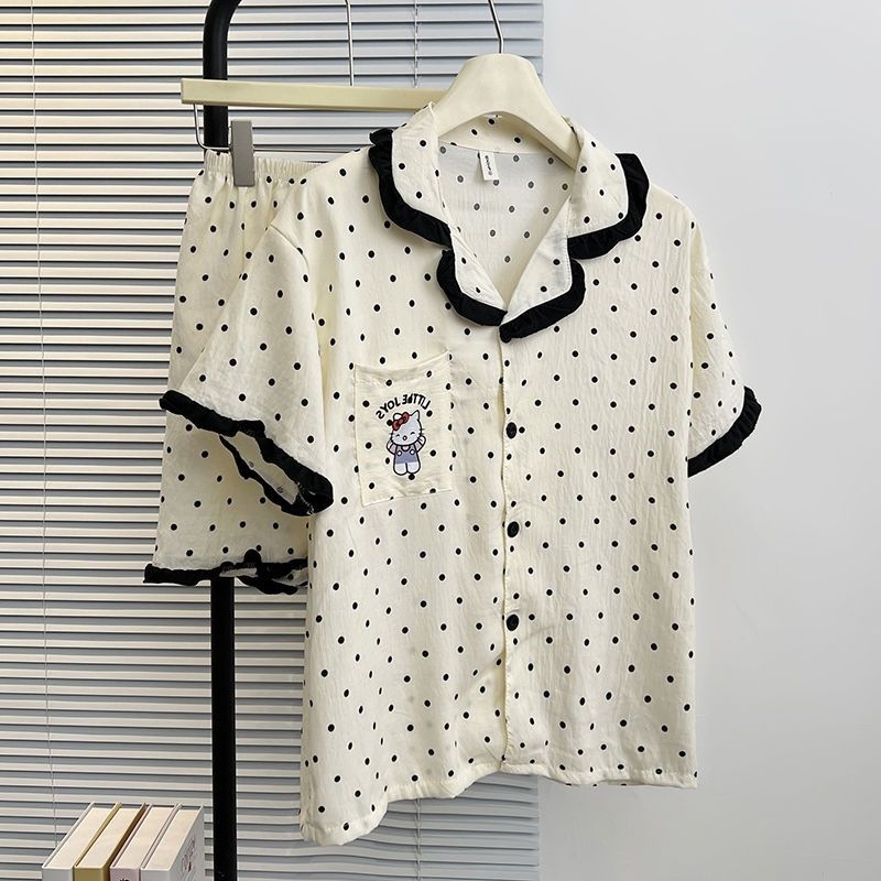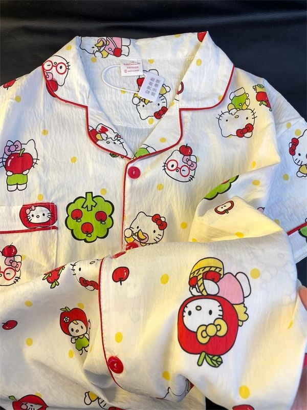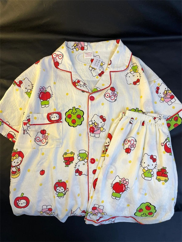 Apple 헬로 키티 잠옷 여름 여성 2025 새로운 반팔 반바지 여름 한국 스타일 홈웨어 세트 외부 착용 가능스토어 가기