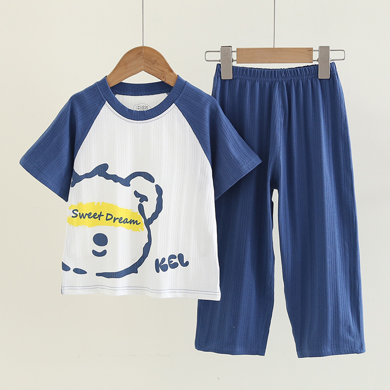 아동용 얇은 반팔 바지 정장 라이크라 아이스 느낌 소년 잠옷 소녀 중대형 아동복 부모-자식 의류