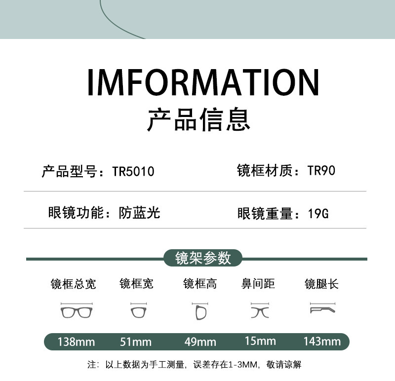 남성용 트렌디 근시 안경, 여성용 초경량 tr90 근시 안경 프레임, 복고풍 대형 프레임 근시 평면 안경, 인터넷 연예인