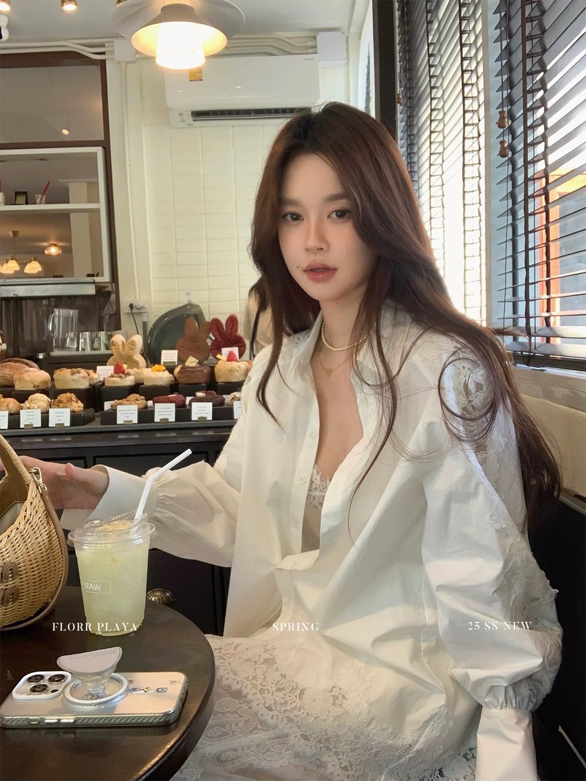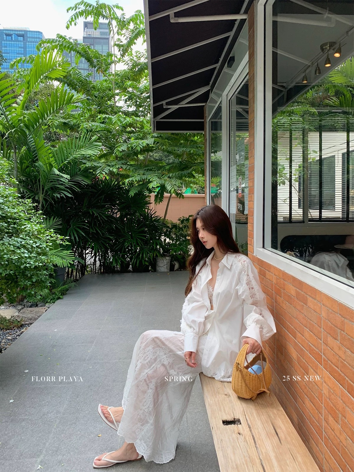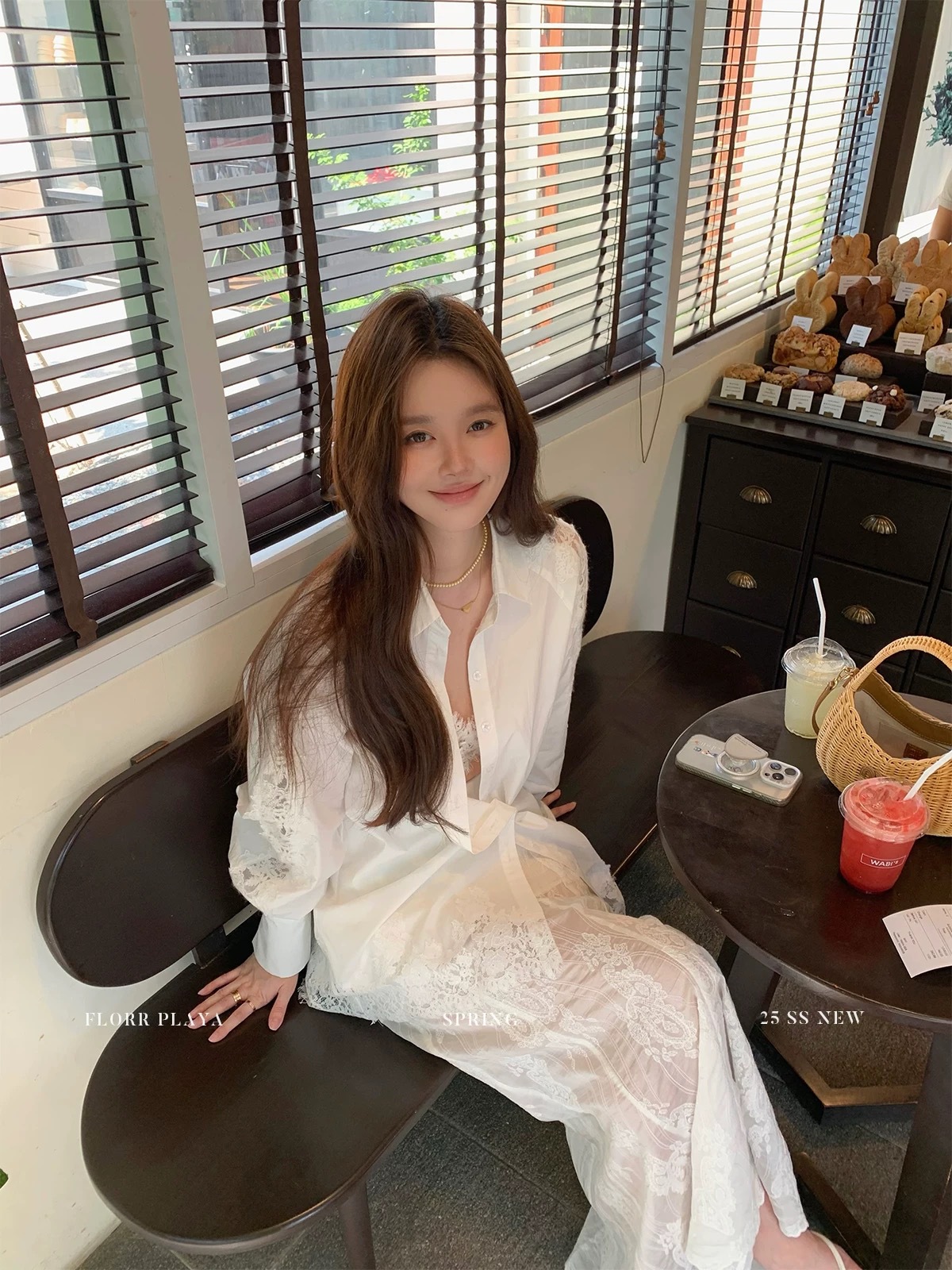 • 흰색 셔츠 + 레이스 스커트 (고품질)