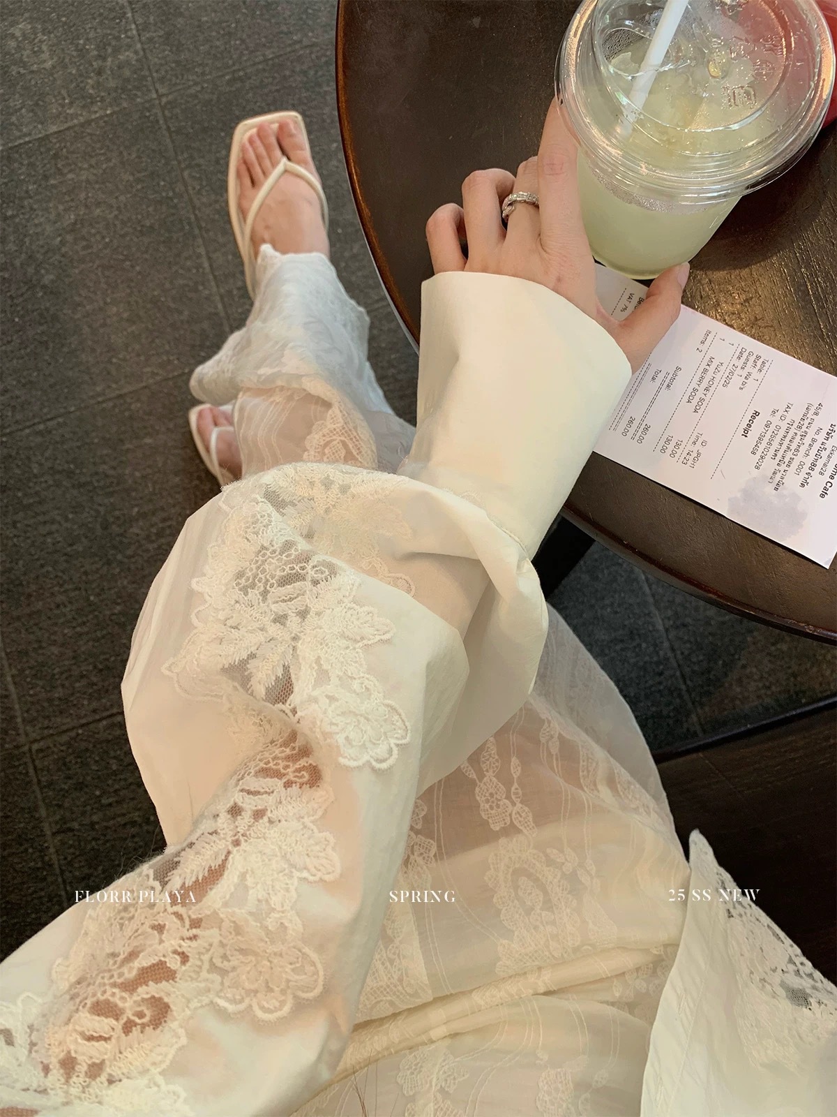 Huahuayuan Moon Blouse 프렌치 긴팔 레이스 셔츠 여성 봄 스플라이싱 디자인 스커트 슈트스토어 가기
