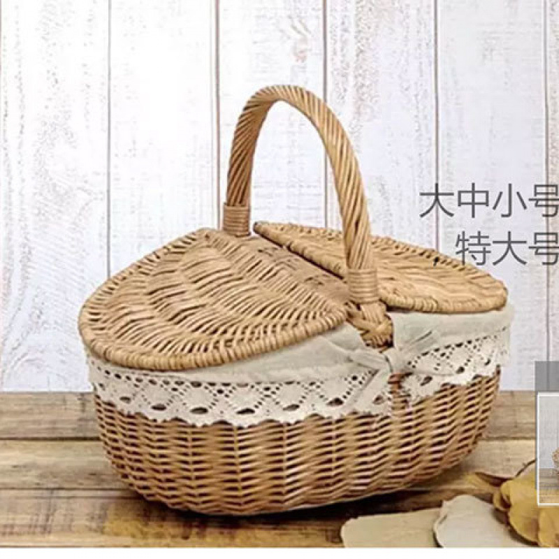 피크닉 바구니 대나무 등나무 손바구니 뚜껑 포함 대형 야외 쇼핑 바구니 야채 바구니 따기 바구니 보관 바구니 크로스보더스토어 가기