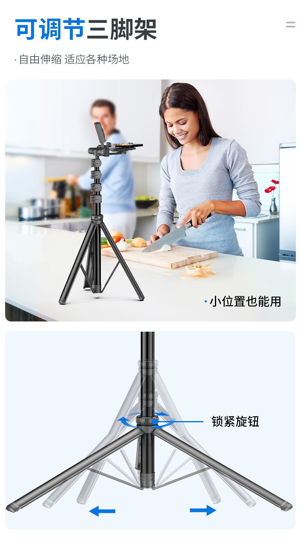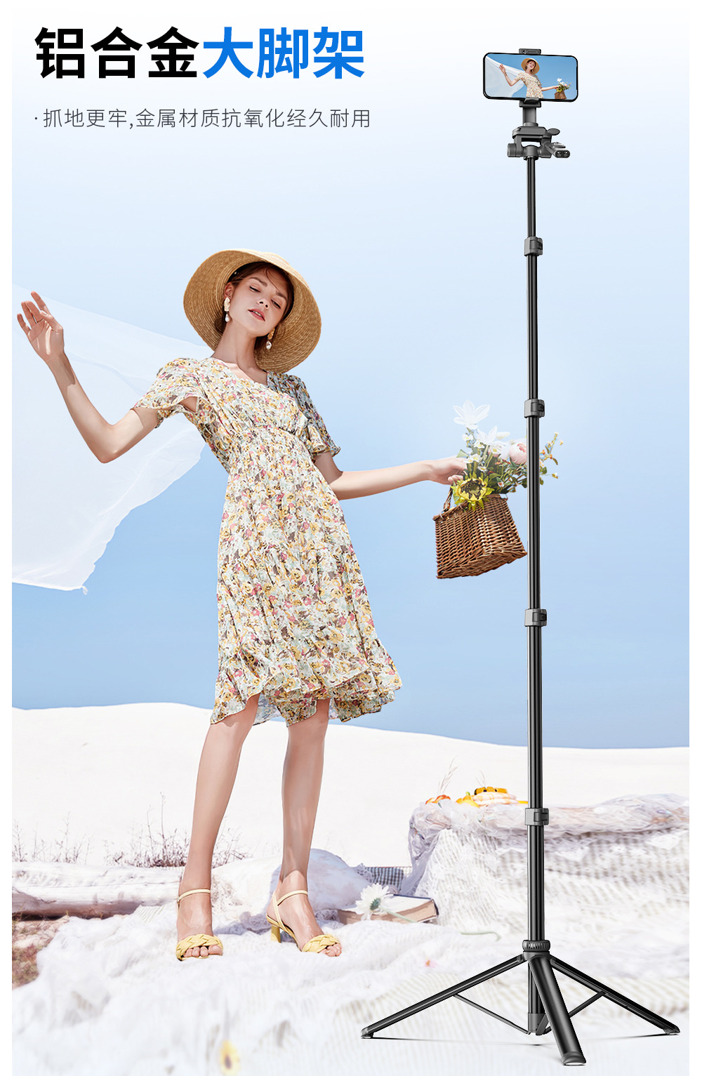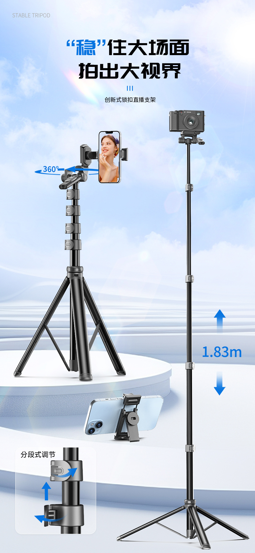 CYKE 금속 휴대 전화 홀더 바닥 라이브 사진 카메라 삼각대 짐벌 안정기 알루미늄 합금 셀카 스틱스토어 가기
