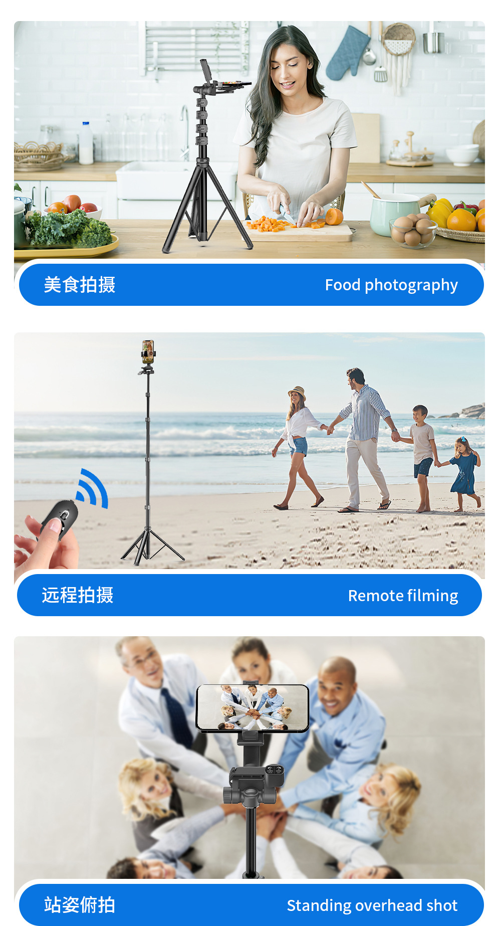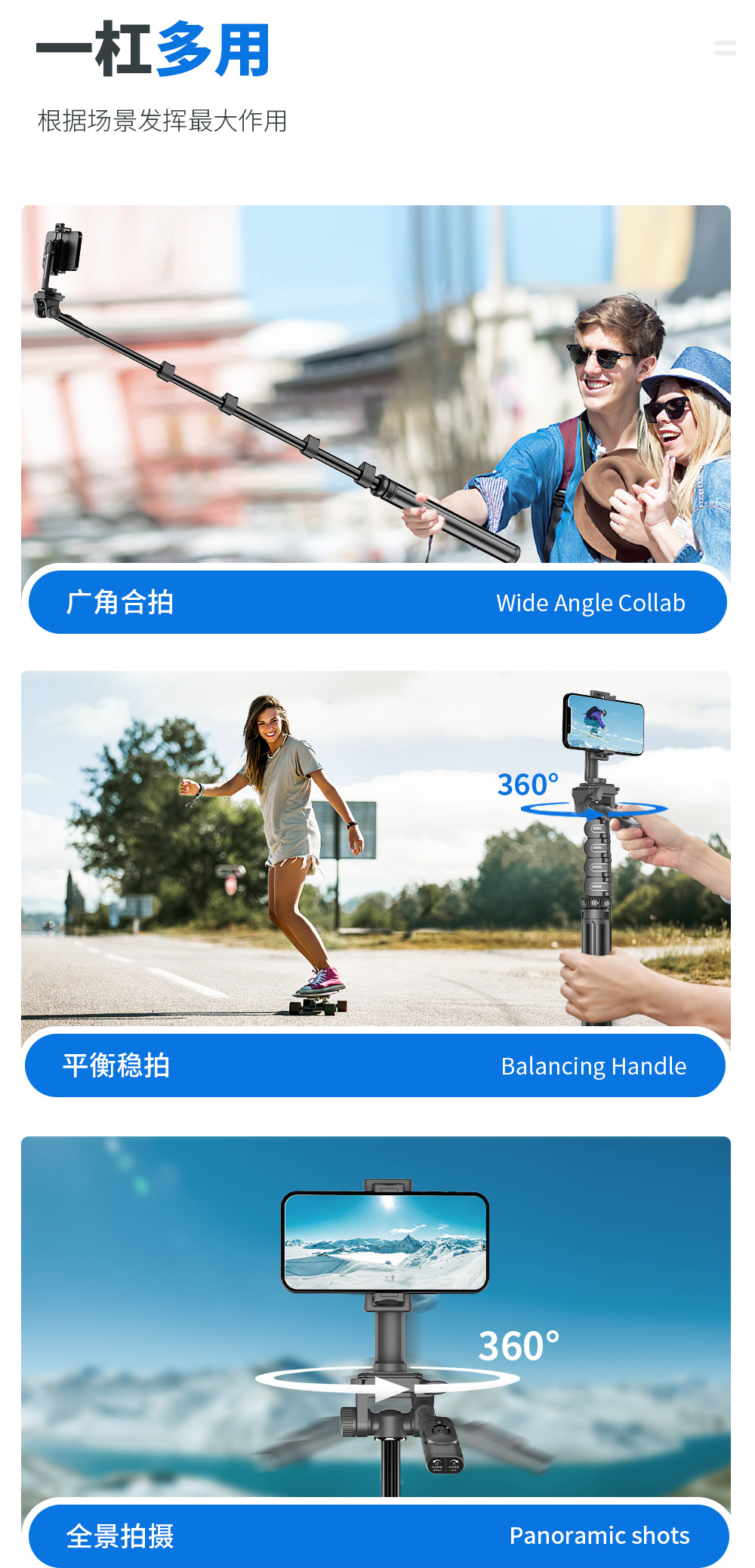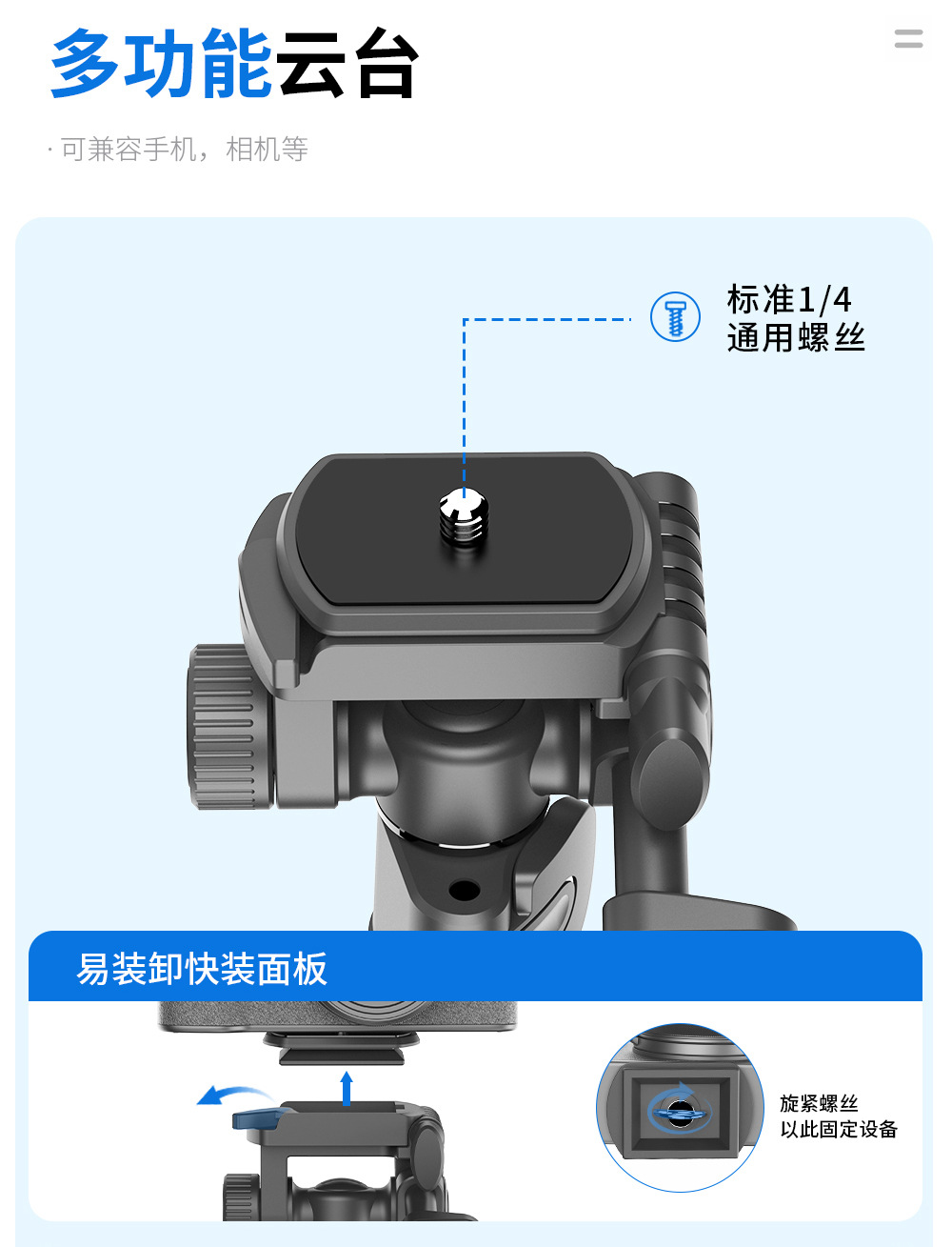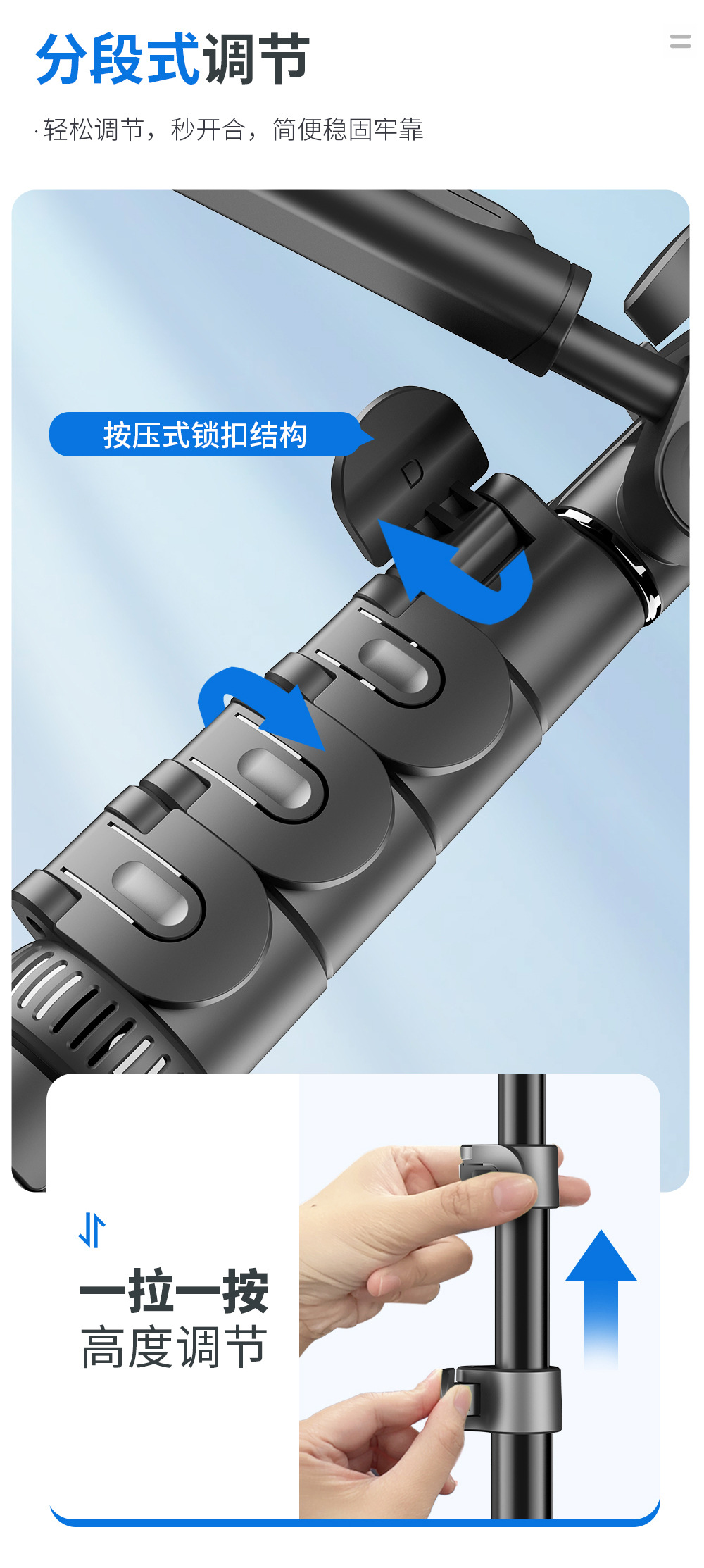 CYKE 금속 휴대 전화 홀더 바닥 라이브 사진 카메라 삼각대 짐벌 안정기 알루미늄 합금 셀카 스틱스토어 가기