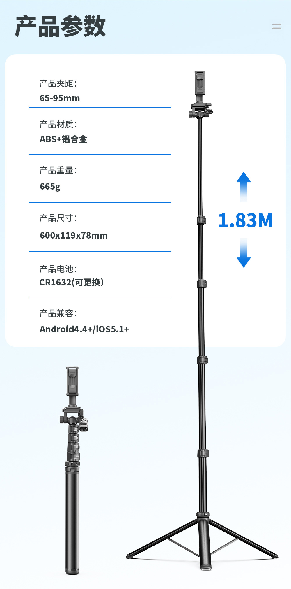 CYKE 금속 휴대 전화 홀더 바닥 라이브 사진 카메라 삼각대 짐벌 안정기 알루미늄 합금 셀카 스틱
