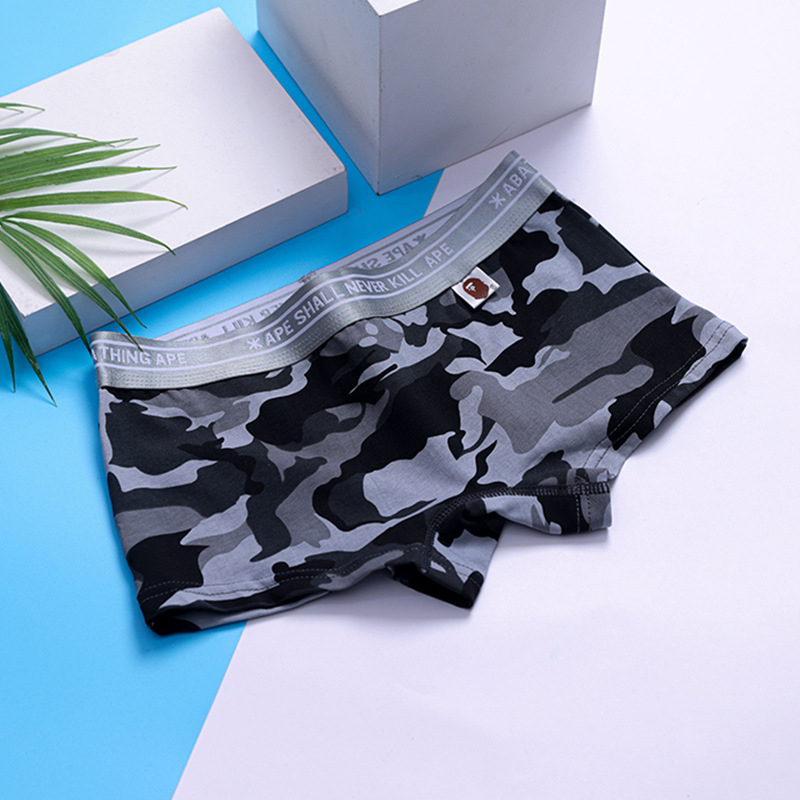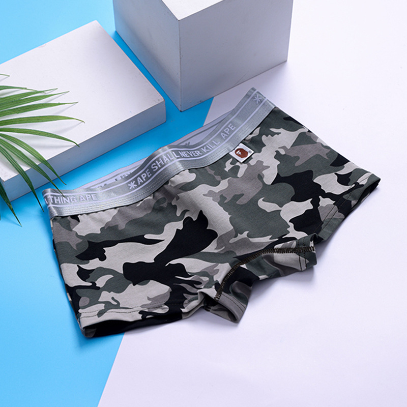 여성용 순수 코튼 팬티, 카모플라주, 중간 허리, 와이드 챙, 사각형, 삼각형, 스포츠, 패션 프린트, 통기성, 대형 반바지스토어 가기
