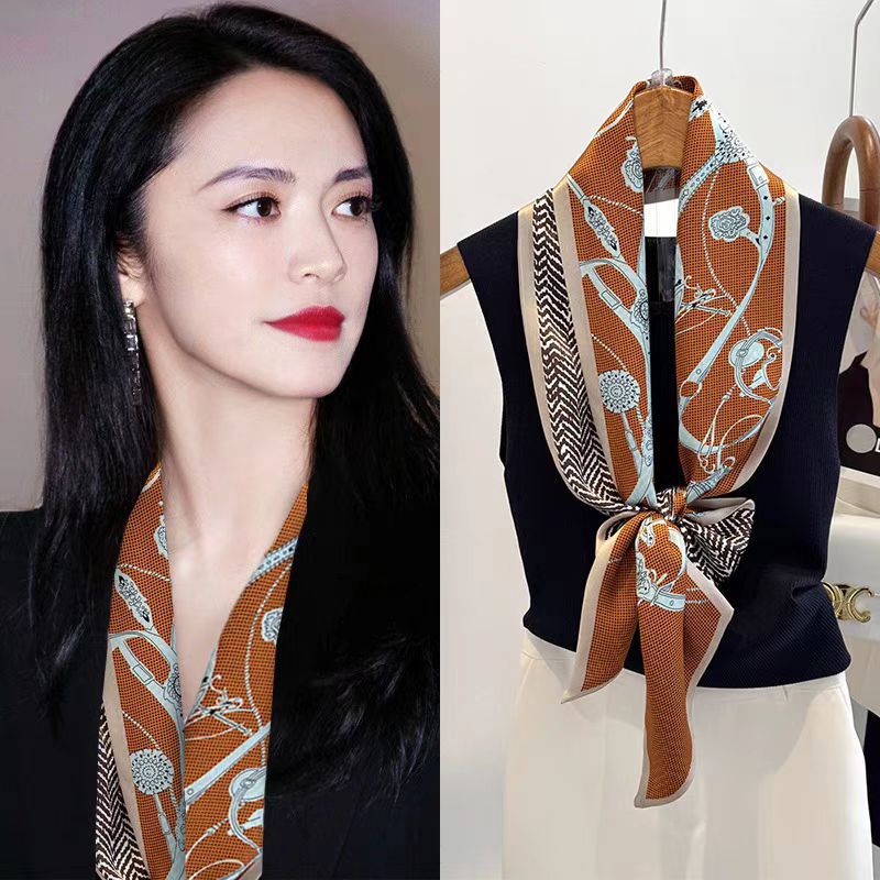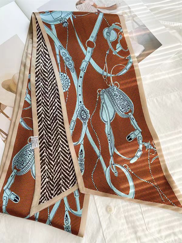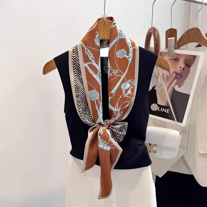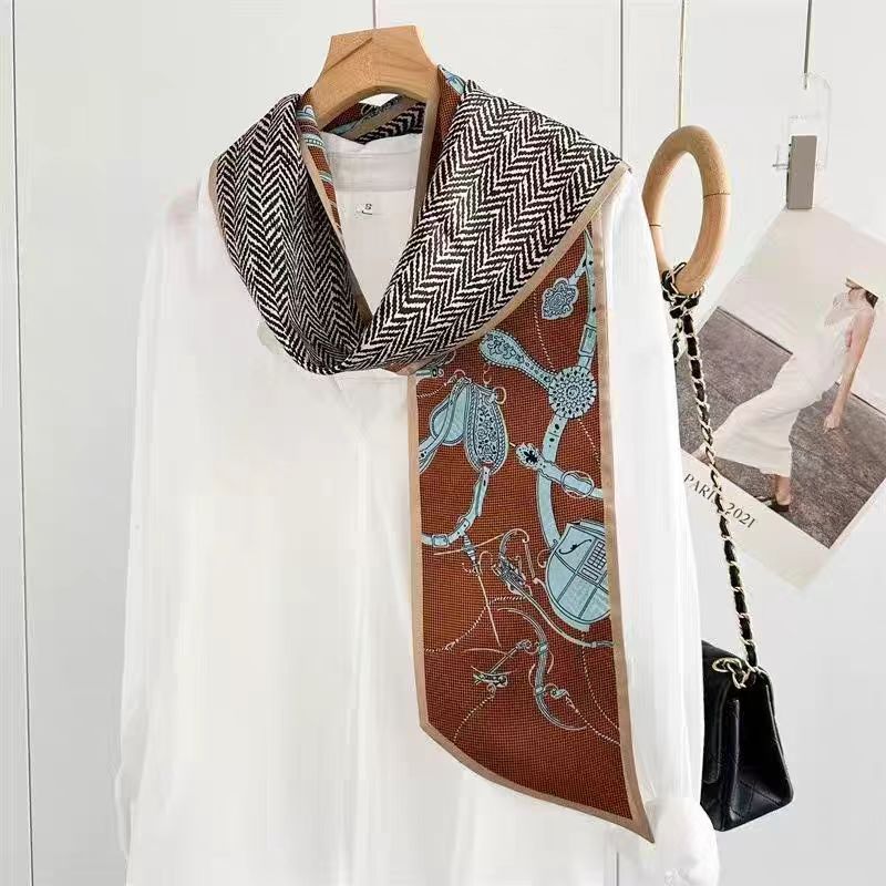 100% 뽕나무 실크 블루 브라운 안장 16*145 실크 크레이프 새틴 봄, 가을 여성 각진 리본 스카프스토어 가기