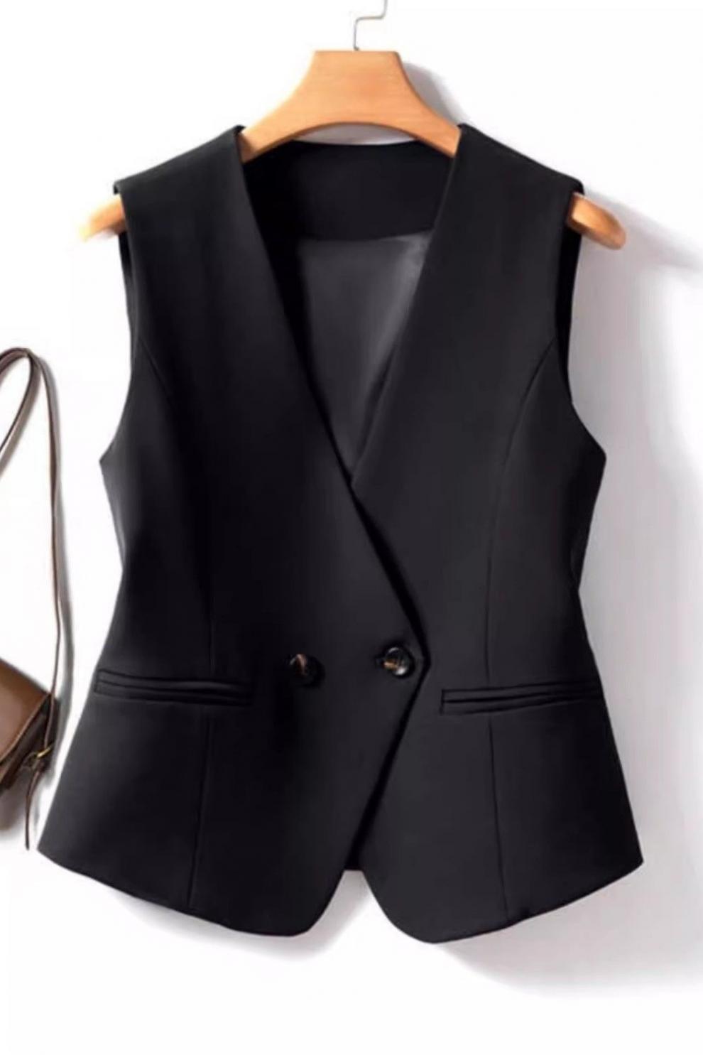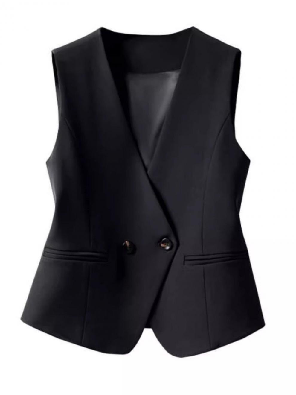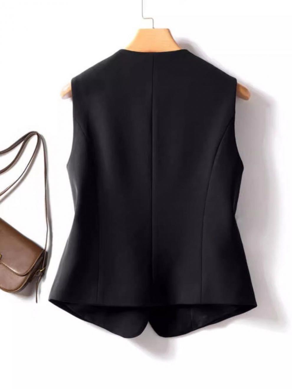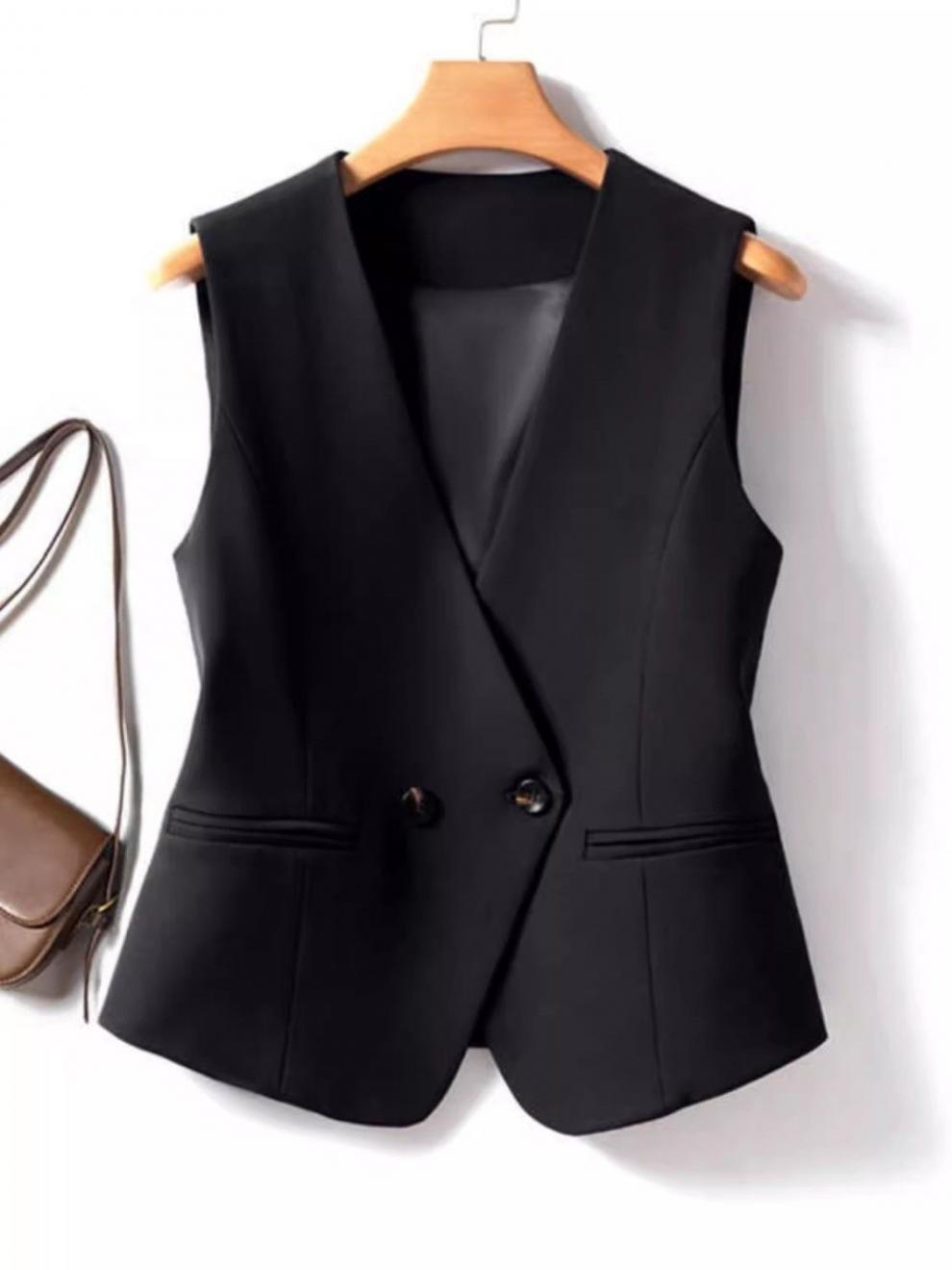 슬림핏 짧은 조끼 봄, 가을 정장 2025 새로운 스타일 양복 조끼 슬리밍 더블 브레스트 조끼 블랙 여성