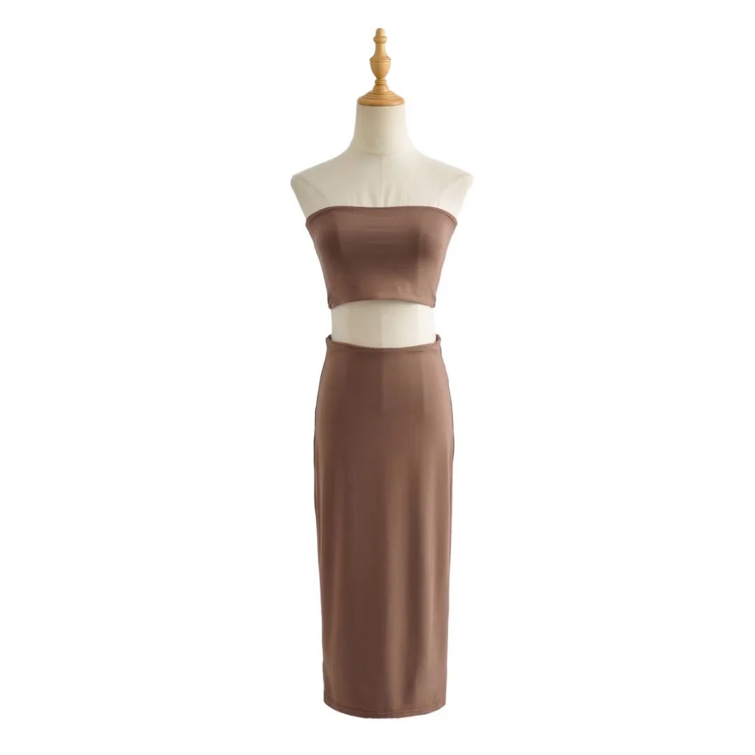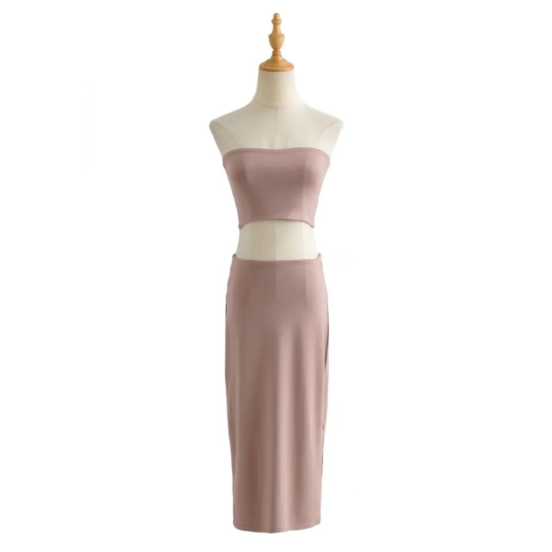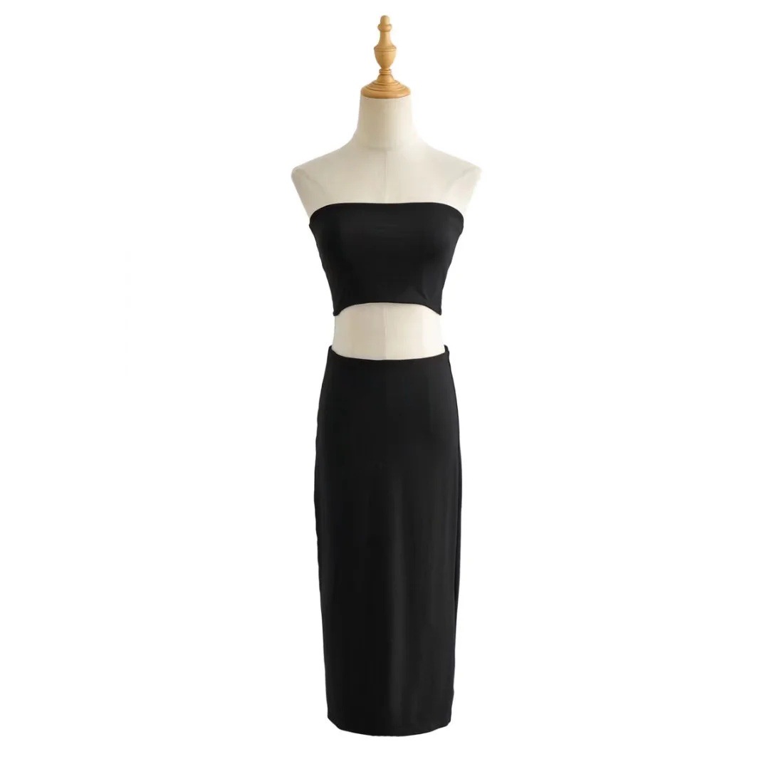 아메리칸 핫걸 짧은 탄성 슬림 캐미솔 + 여성용 섹시한 하이 웨이스트 사이드 슬릿 스커트 슈트스토어 가기