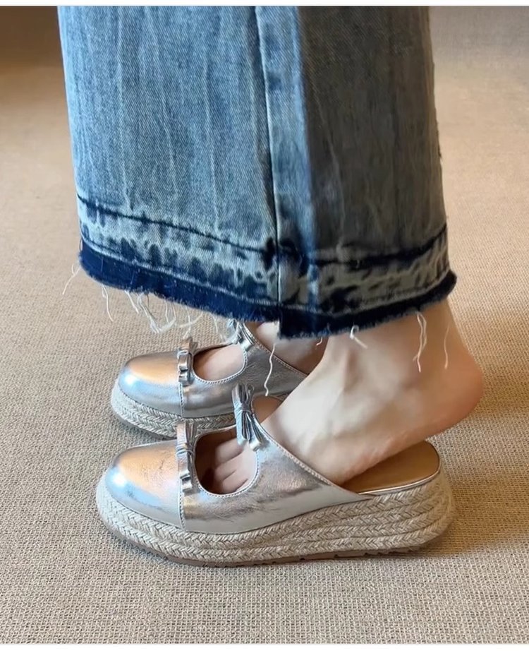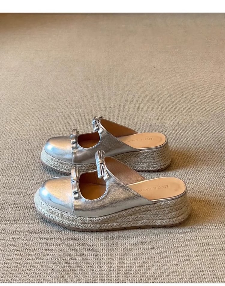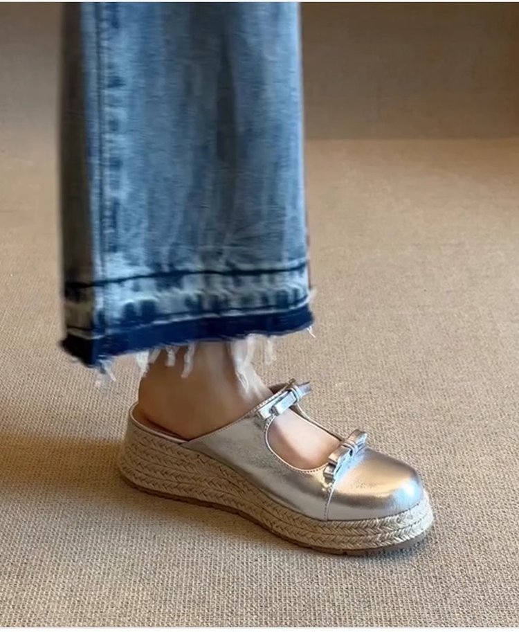 [아마노] 복고풍 두꺼운 바닥 머핀 덮힌 활 슬리퍼 2025 여름 새 여성 하프 슬리퍼