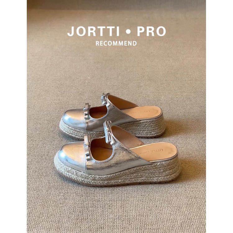 [아마노] 복고풍 두꺼운 바닥 머핀 덮힌 활 슬리퍼 2025 여름 새 여성 하프 슬리퍼스토어 가기
