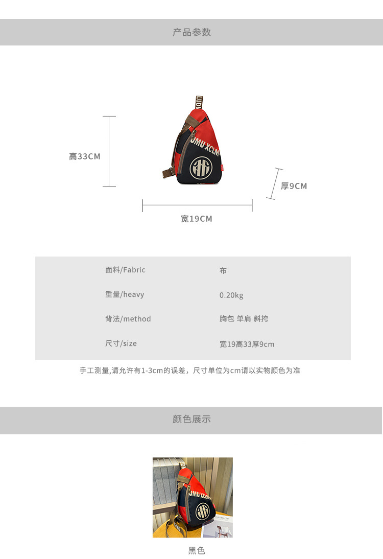 [여름에 사용하기 쉬운-중국 레드] 트렌디 한 브랜드 가슴 가방 남성과 여성의 휴대 전화 메신저 가방 캐주얼 다용도 숄더백