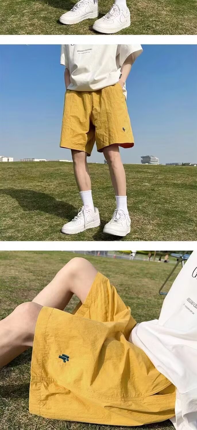 남성용 반바지 2025 여름 얇은 얼음 실크 시원한 캐주얼 5부 바지 미국 자수 해변 농구 스포츠 바지스토어 가기