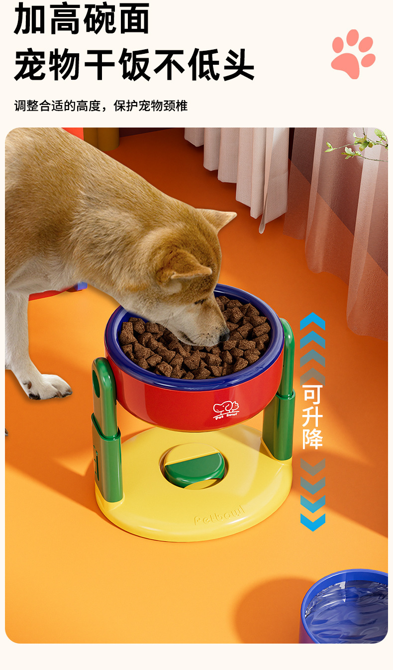 고양이 그릇, 개 그릇, 흡입 컵, 조절 가능한 대구경 애완 동물 그릇, 두꺼운, 넘어짐 방지, 목 보호대, 리프팅 가능한 경사진 입과 높은 다리스토어 가기