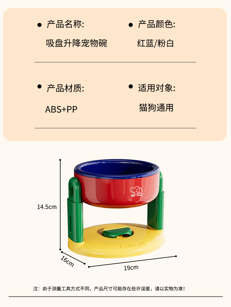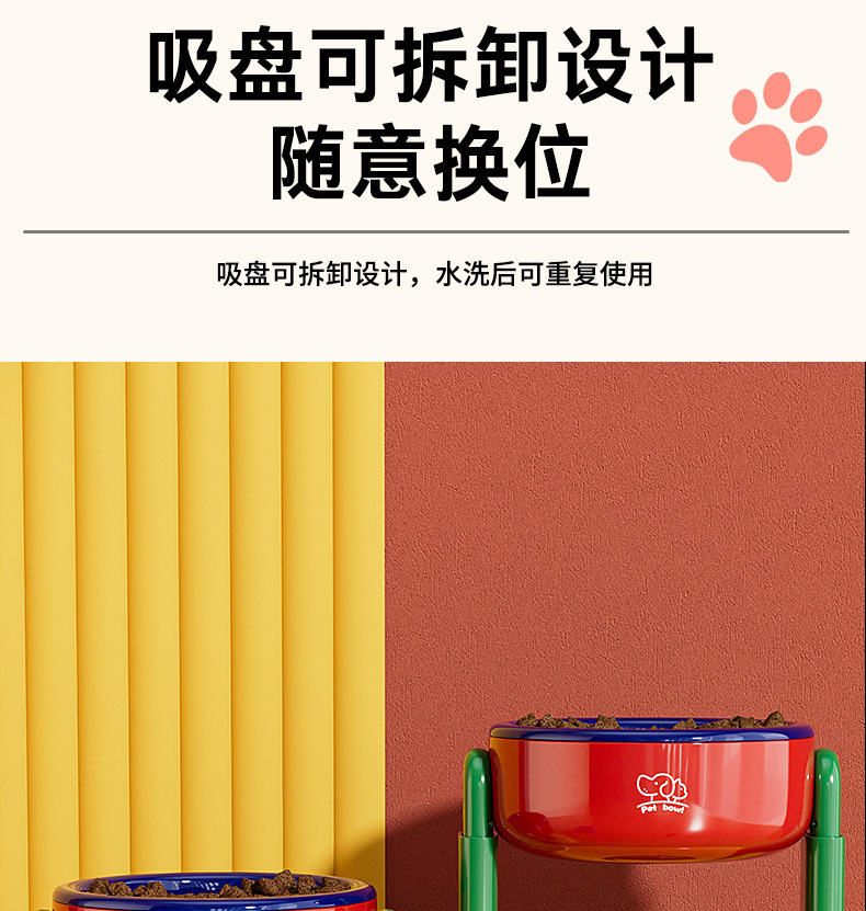 고양이 그릇, 개 그릇, 흡입 컵, 조절 가능한 대구경 애완 동물 그릇, 두꺼운, 넘어짐 방지, 목 보호대, 리프팅 가능한 경사진 입과 높은 다리