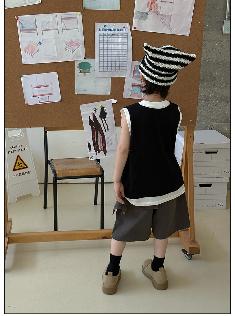 이홍 의류 어린이 가짜 투피스 조끼 25 여름 새 소년 민소매 한국 스타일 웨이스트 코트 티셔츠