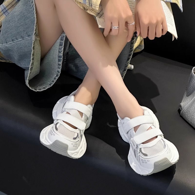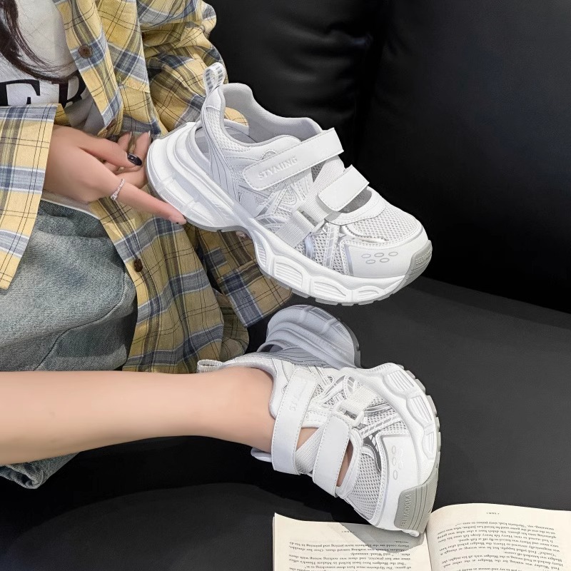여성을위한 여름 중공 메쉬 아빠 신발 2025 새로운 두꺼운 밑창 초경량 벨크로 통기성 스포츠 및 레저 샌들 유행스토어 가기