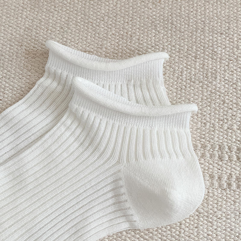 롤업 양말 봄과 여름 얇은 양말 메쉬 통기성 다목적면 양말 흰색 짧은 여성 양말