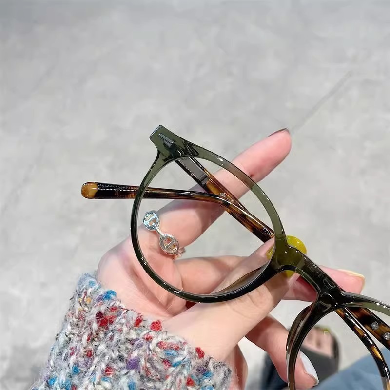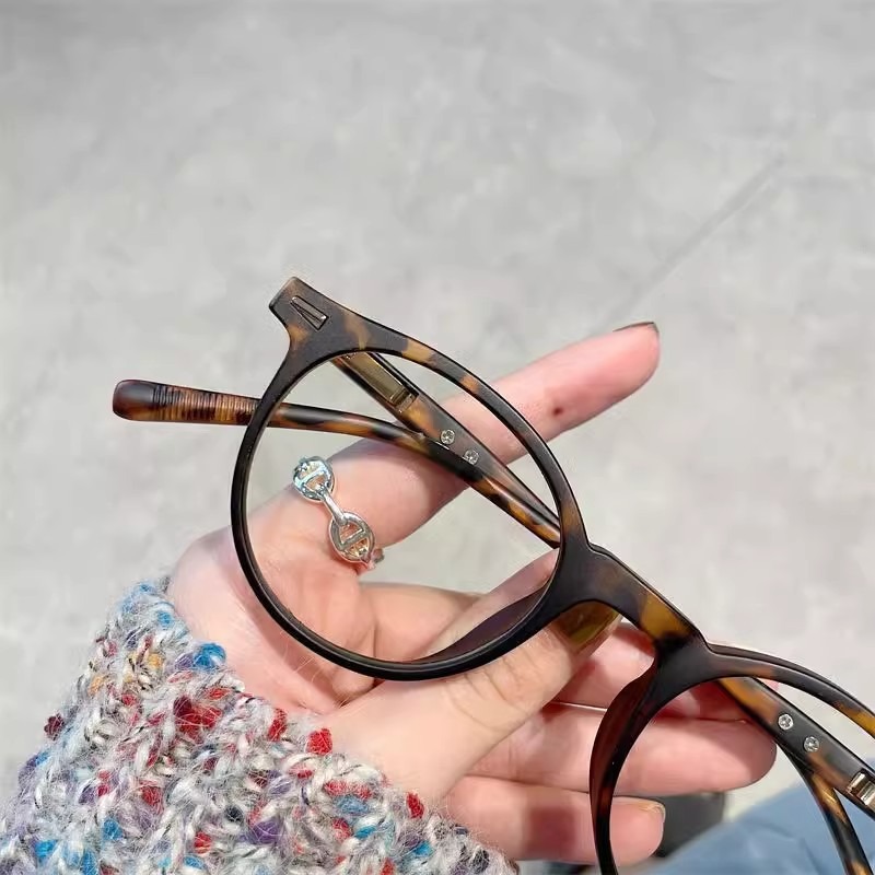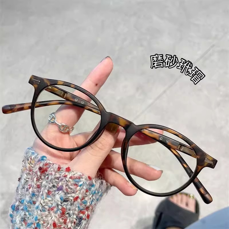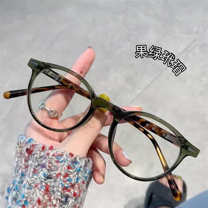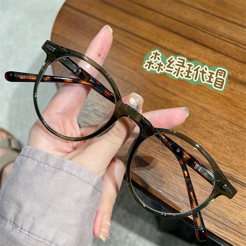 여성용 복고풍 거북이 껍질 작은 원형 프레임 평면 거울, 고급 예술적 대형 얼굴 슬리밍 안경 프레임, 비즈니스 안티 블루 라이트 근시