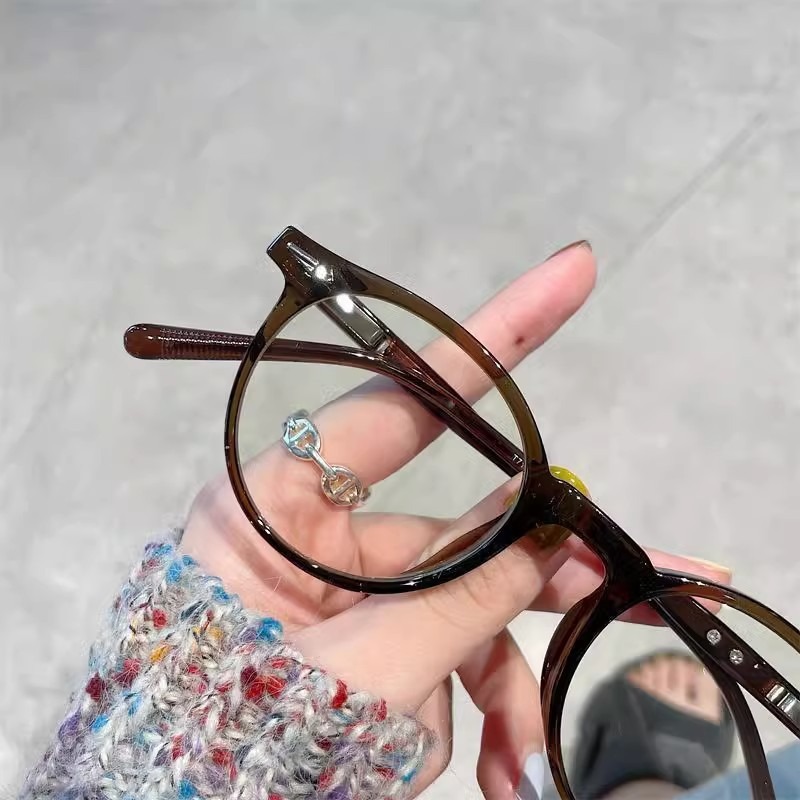 여성용 복고풍 거북이 껍질 작은 원형 프레임 평면 거울, 고급 예술적 대형 얼굴 슬리밍 안경 프레임, 비즈니스 안티 블루 라이트 근시스토어 가기