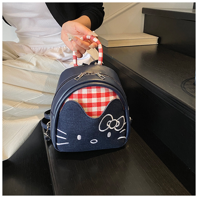 여름 새로운 인터넷 인기 미니 헬로 KT 고양이 배낭 여성 귀여운 작은 배낭 간단한 올 매치 여성용 가방